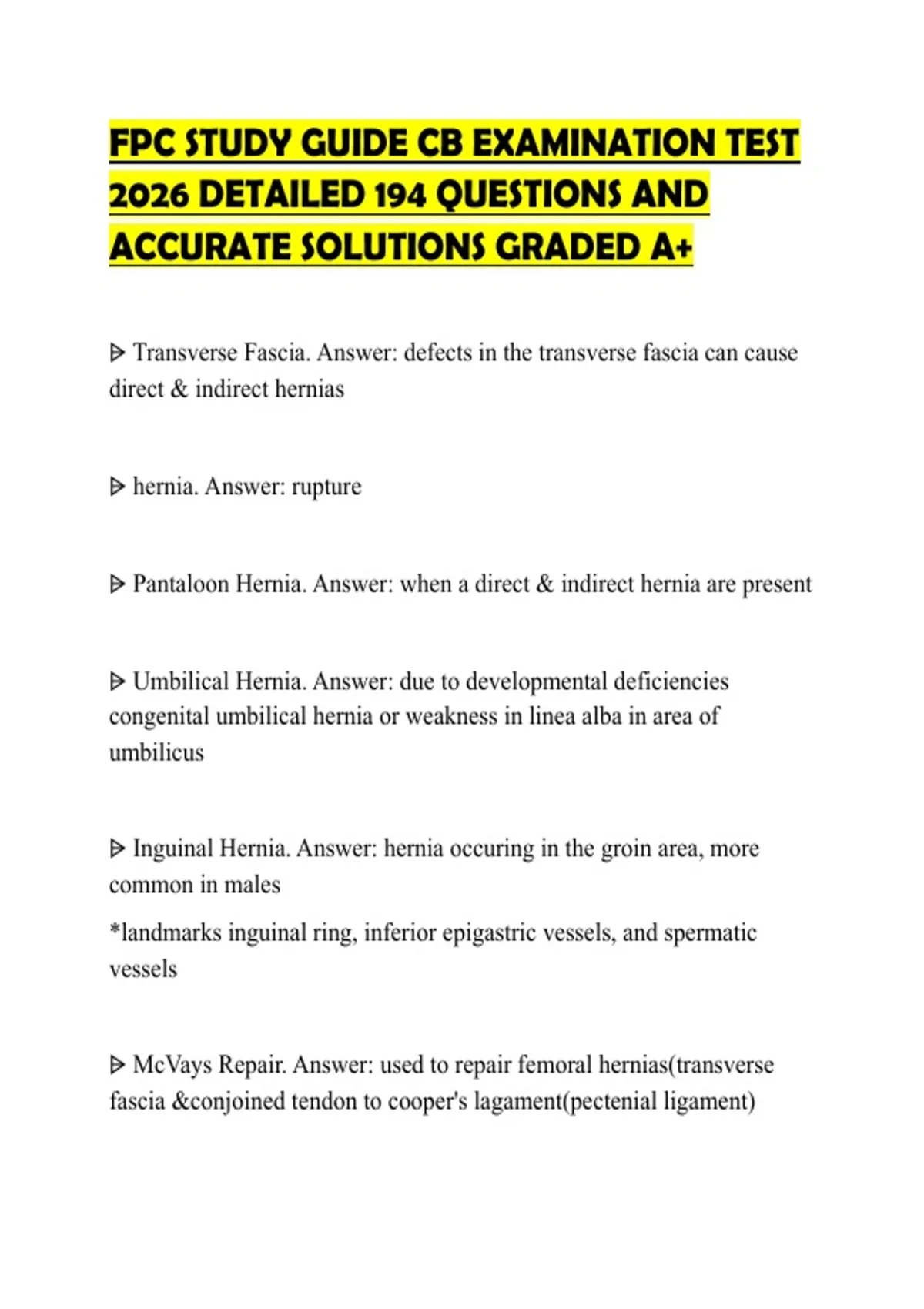 FPC STUDY GUIDE CB EXAMINATION TEST 2026 DETAILED 194 QUESTIONS AND ACCURATE SOLUTIONS GRADED A+