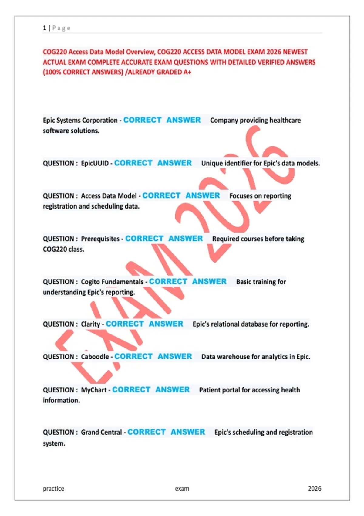 COG220 Access Data Model Overview, COG220 ACCESS DATA MODEL EXAM 2026 NEWEST