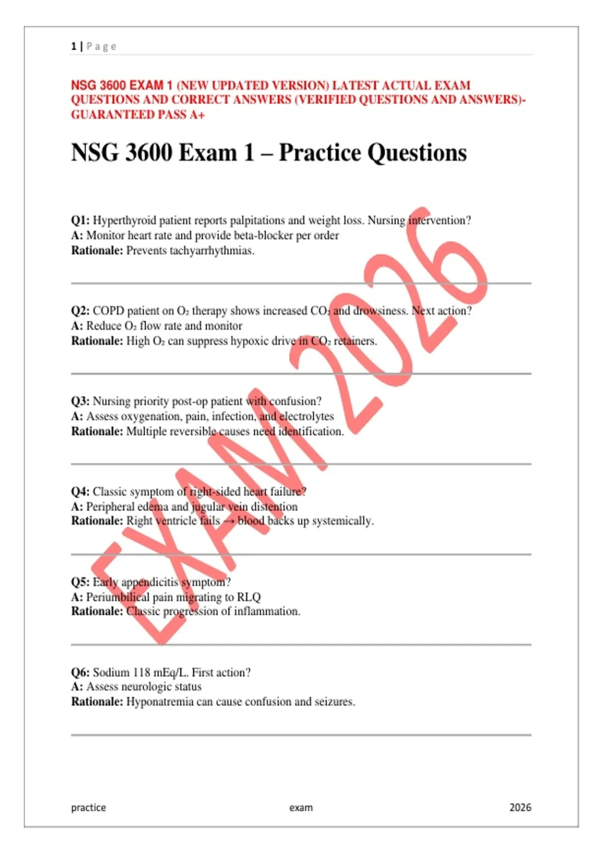 NSG 3600 EXAM 1 (NEW UPDATED VERSION) LATEST ACTUAL EXAM