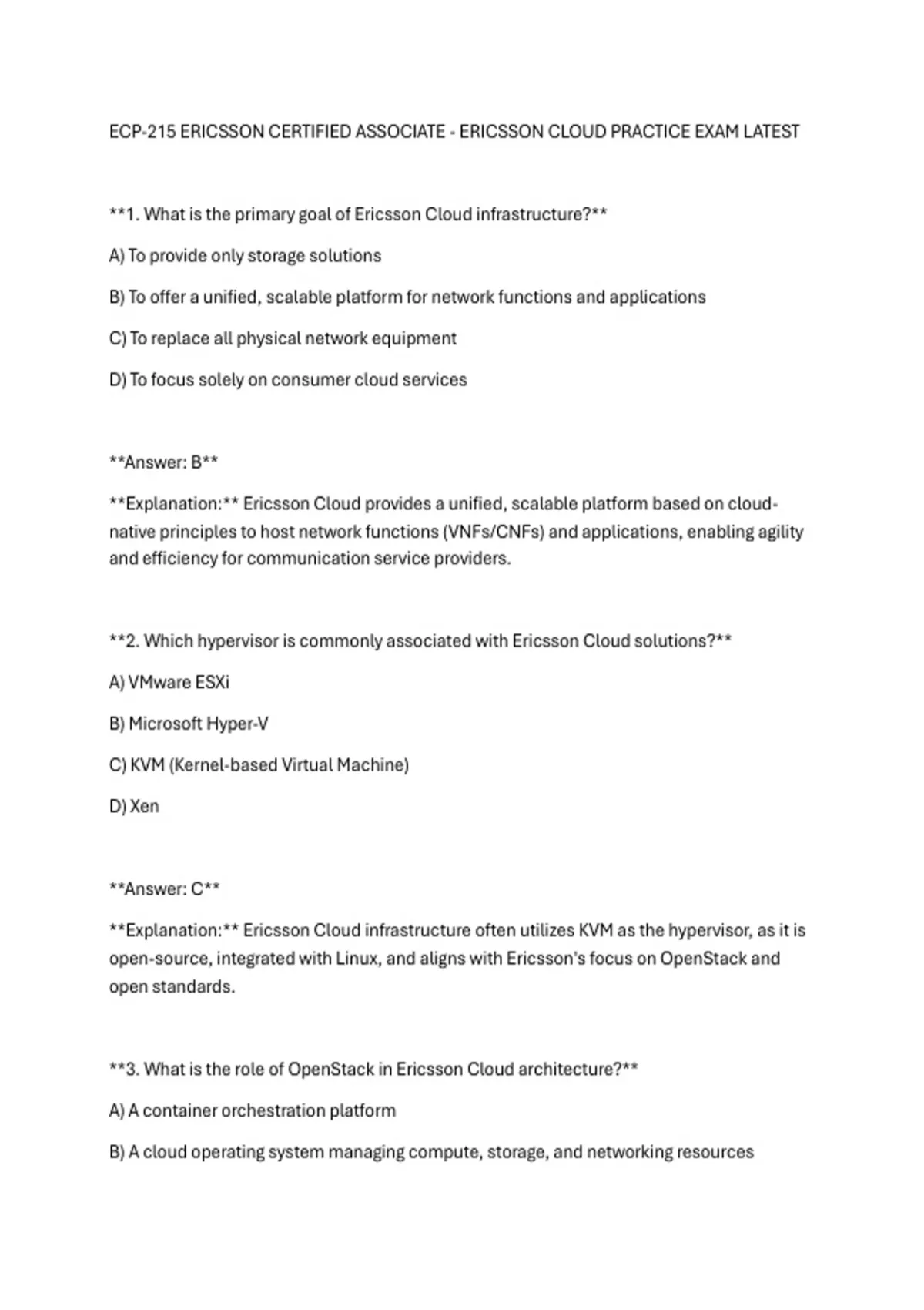 ECP-215 ERICSSON CERTIFIED ASSOCIATE - ERICSSON CLOUD PRACTICE EXAM LATEST