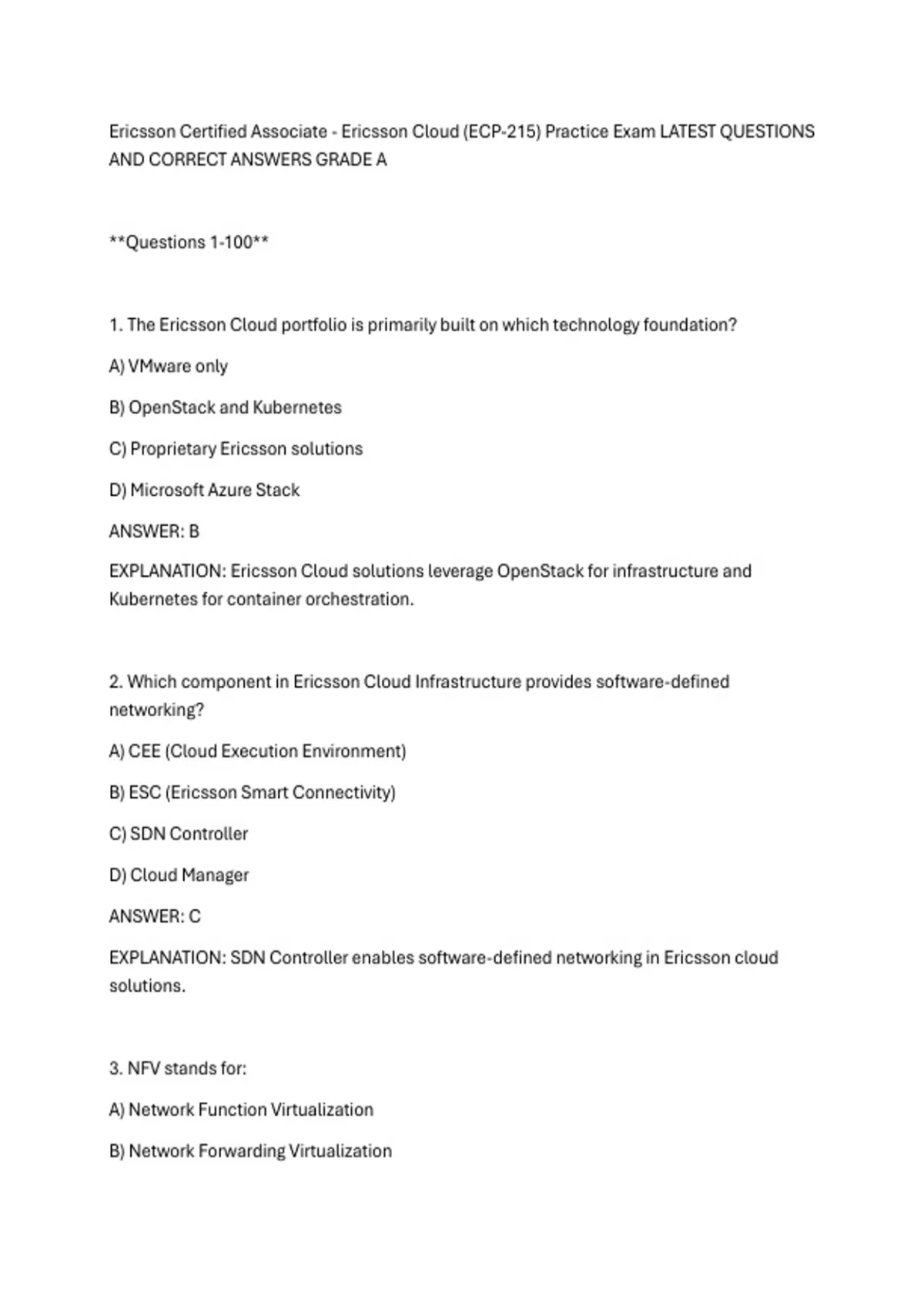 Ericsson Certified Associate - Ericsson Cloud (ECP-215) Practice Exam LATEST QUESTIONS