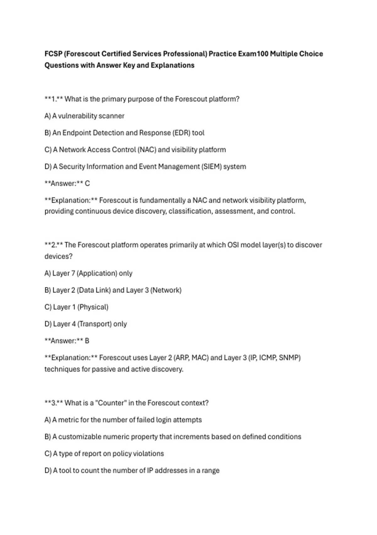 FCSP (Forescout Certified Services Professional) Practice Exam100 Multiple Choice