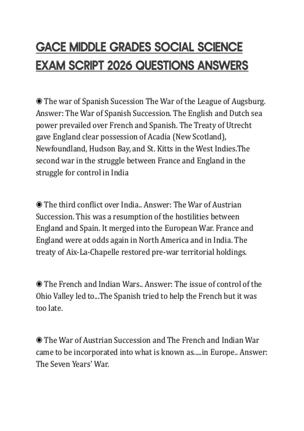 ◉ The third conflict over India.. Answer: The War of Austrian