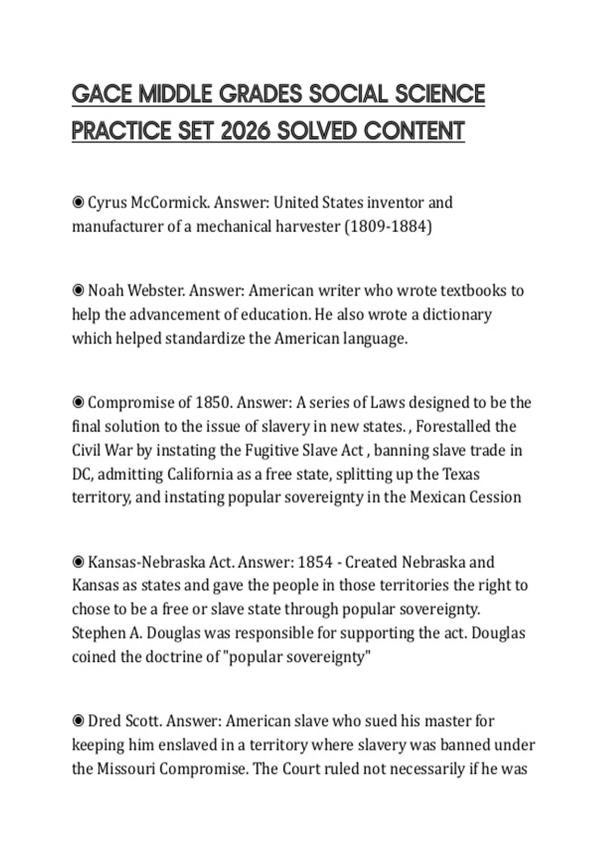 GACE MIDDLE GRADES SOCIAL SCIENCE PRACTICE SET 2026 SOLVED CONTENT