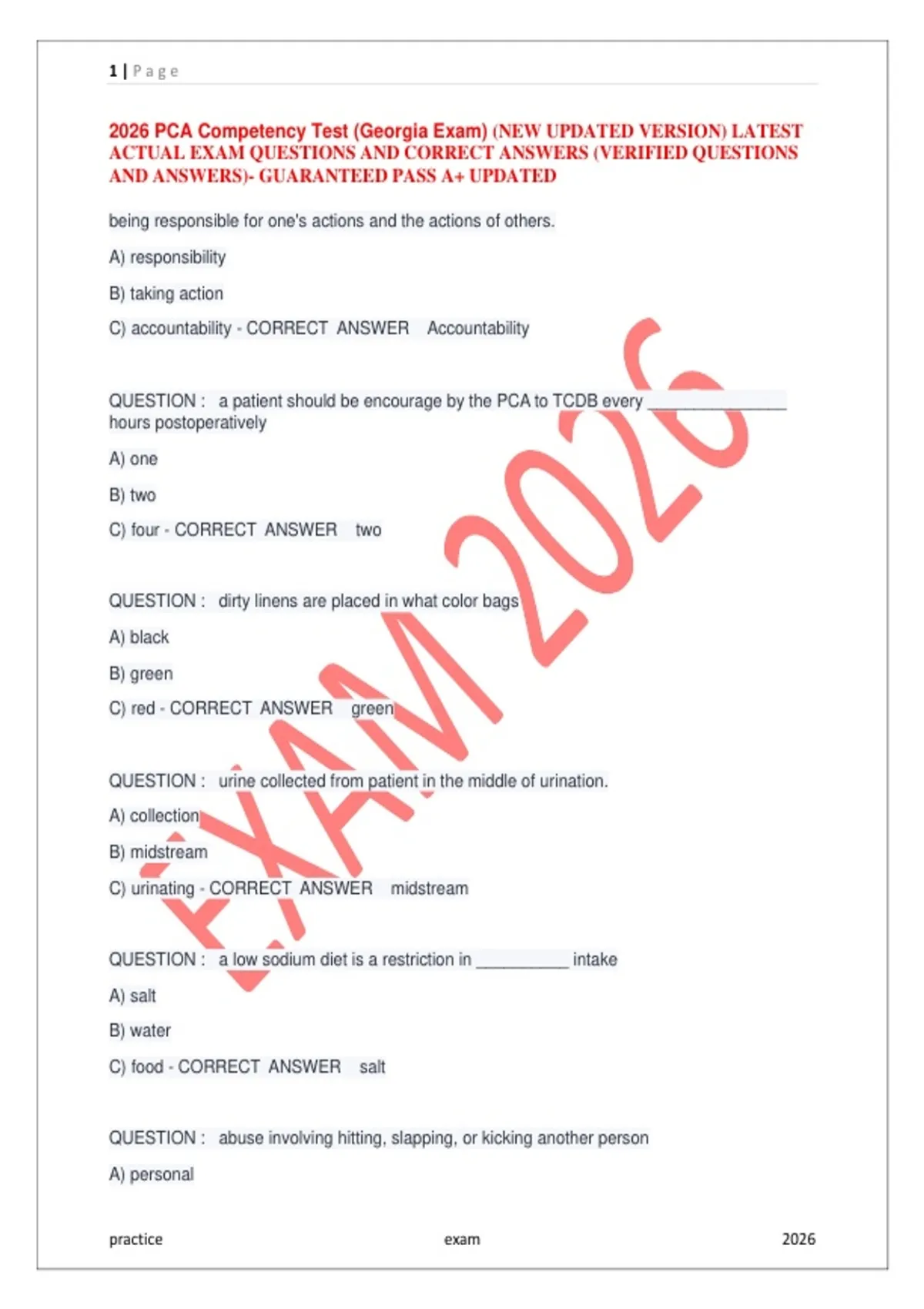 2026 PCA Competency Test (Georgia Exam) (NEW UPDATED VERSION) LATEST