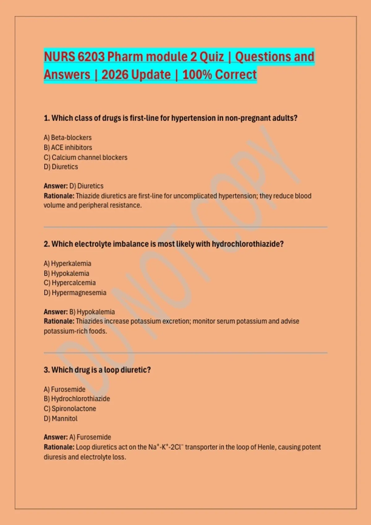 Rationale: Thiazide diuretics are first-line for uncomplicated hypertension; they reduce blood