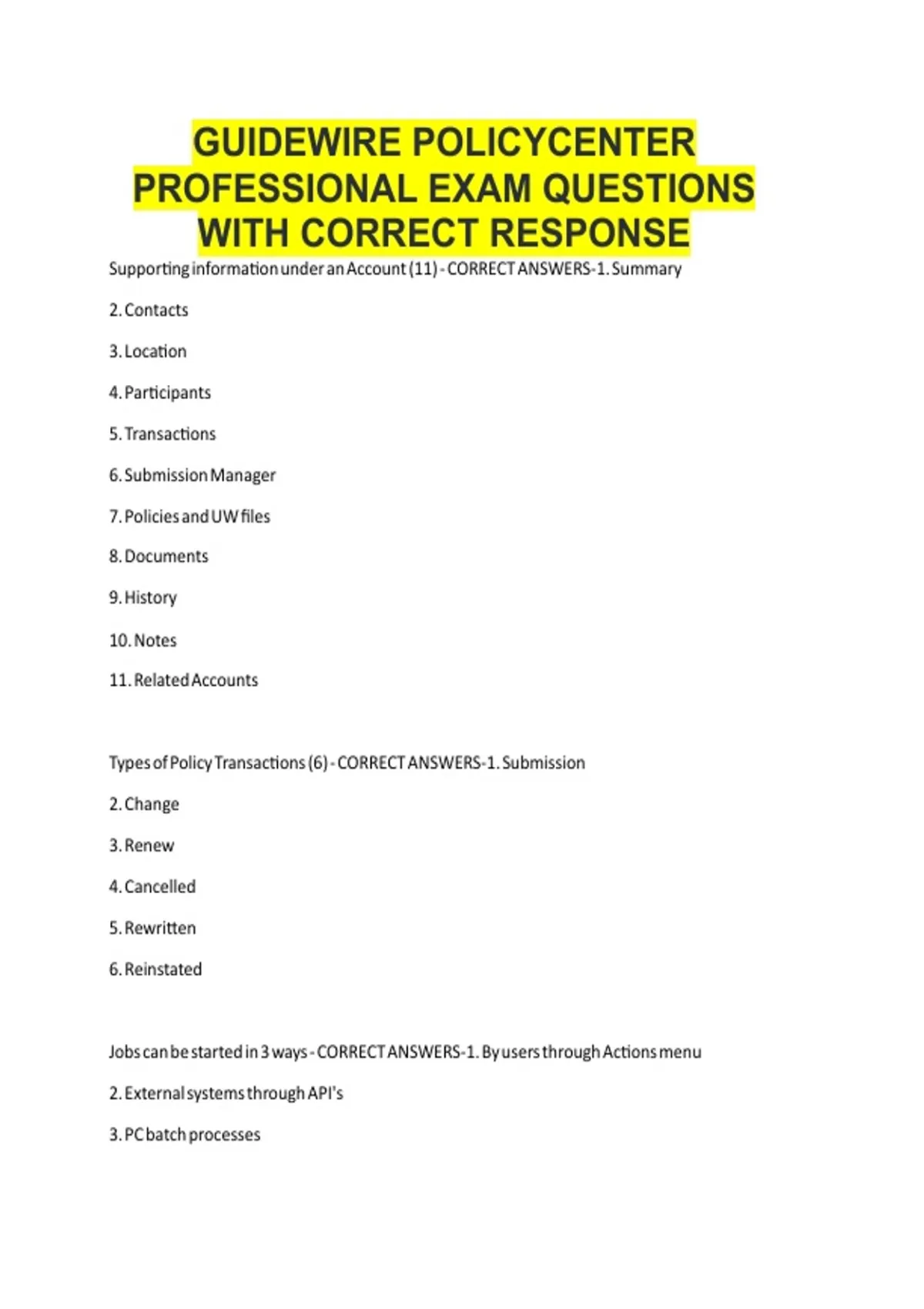 GUIDEWIRE POLICYCENTER PROFESSIONAL EXAM QUESTIONS WITH CORRECT RESPONSE