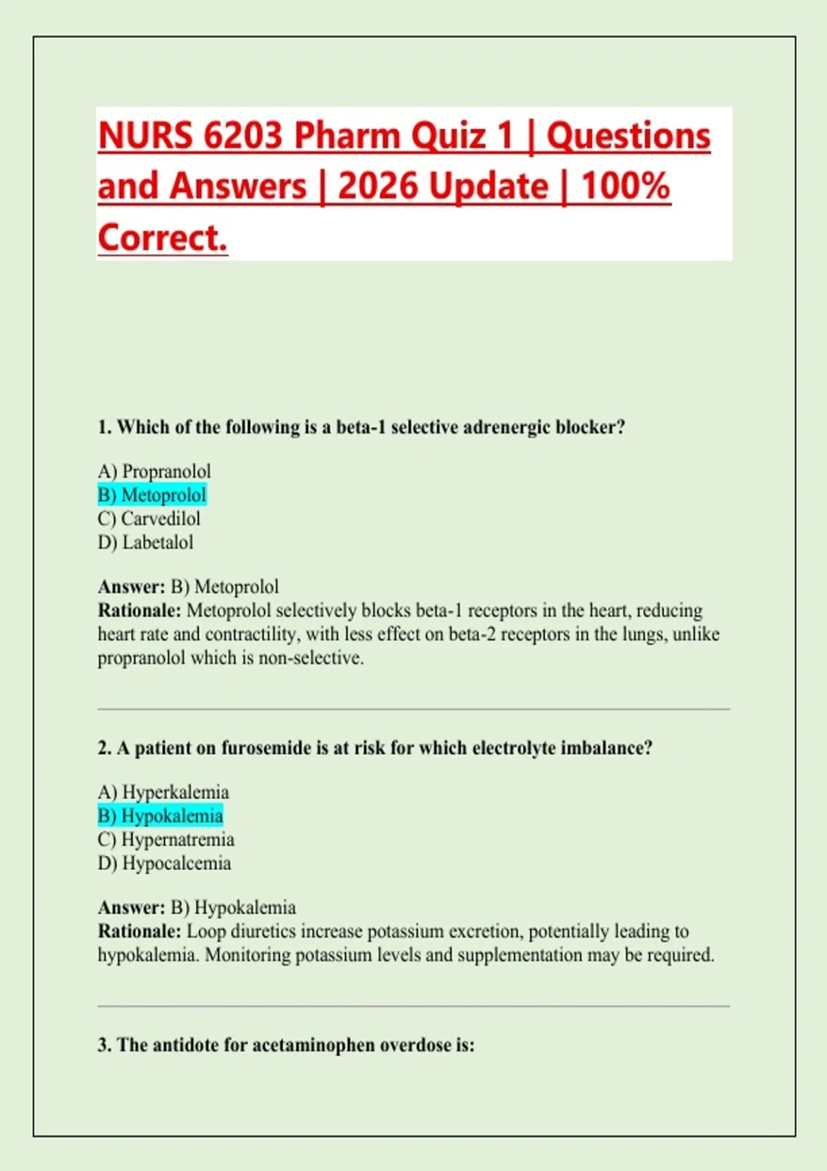 NURS 6203 Pharm Quiz 1 | Questions and Answers | 2026 Update | 100% Correct.