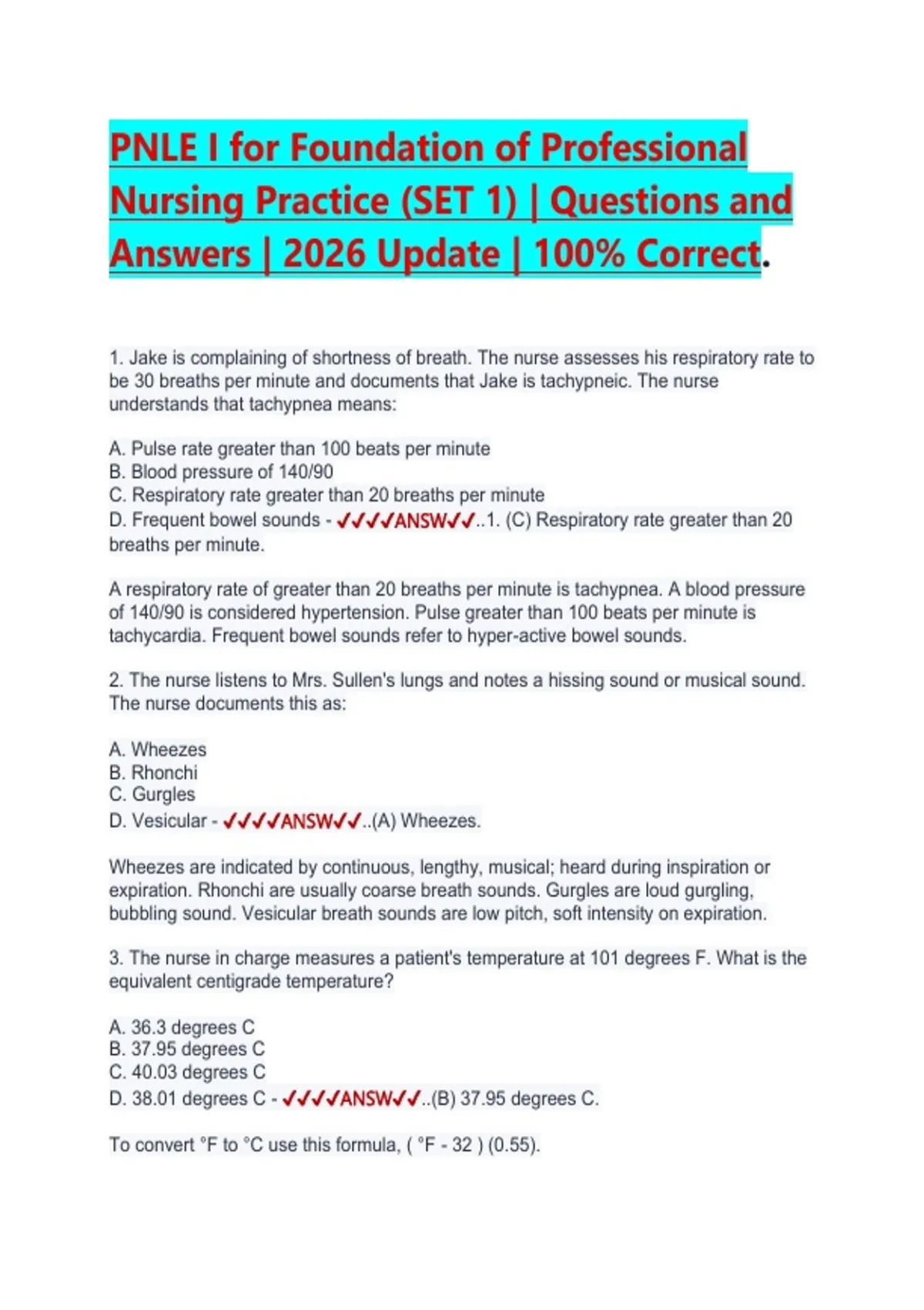 3. The nurse in charge measures a patient's temperature at 101 degrees F. What is the