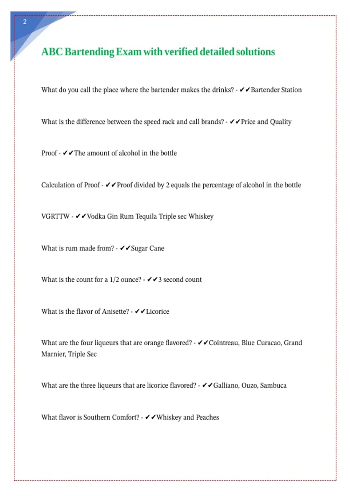 ABC Bartending Exam with verified detailed solutions