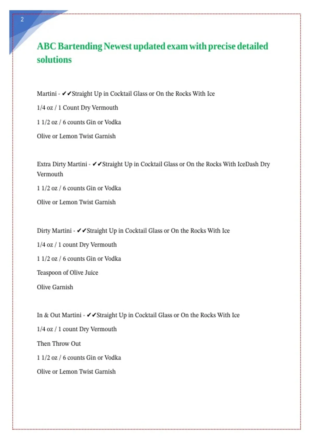 ABC Bartending Newest updated exam with precise detailed