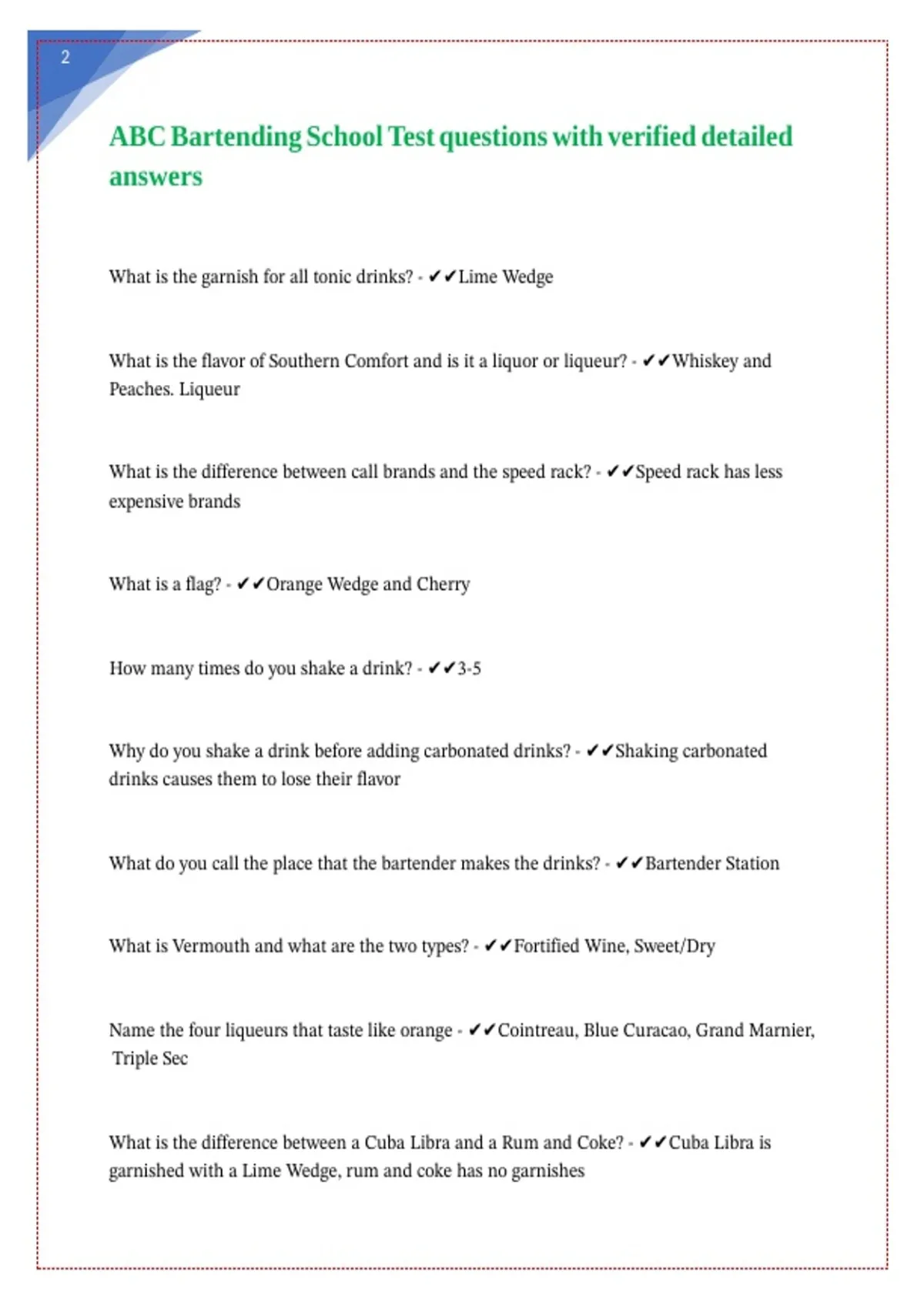 ABC Bartending School Test questions with verified detailed answers