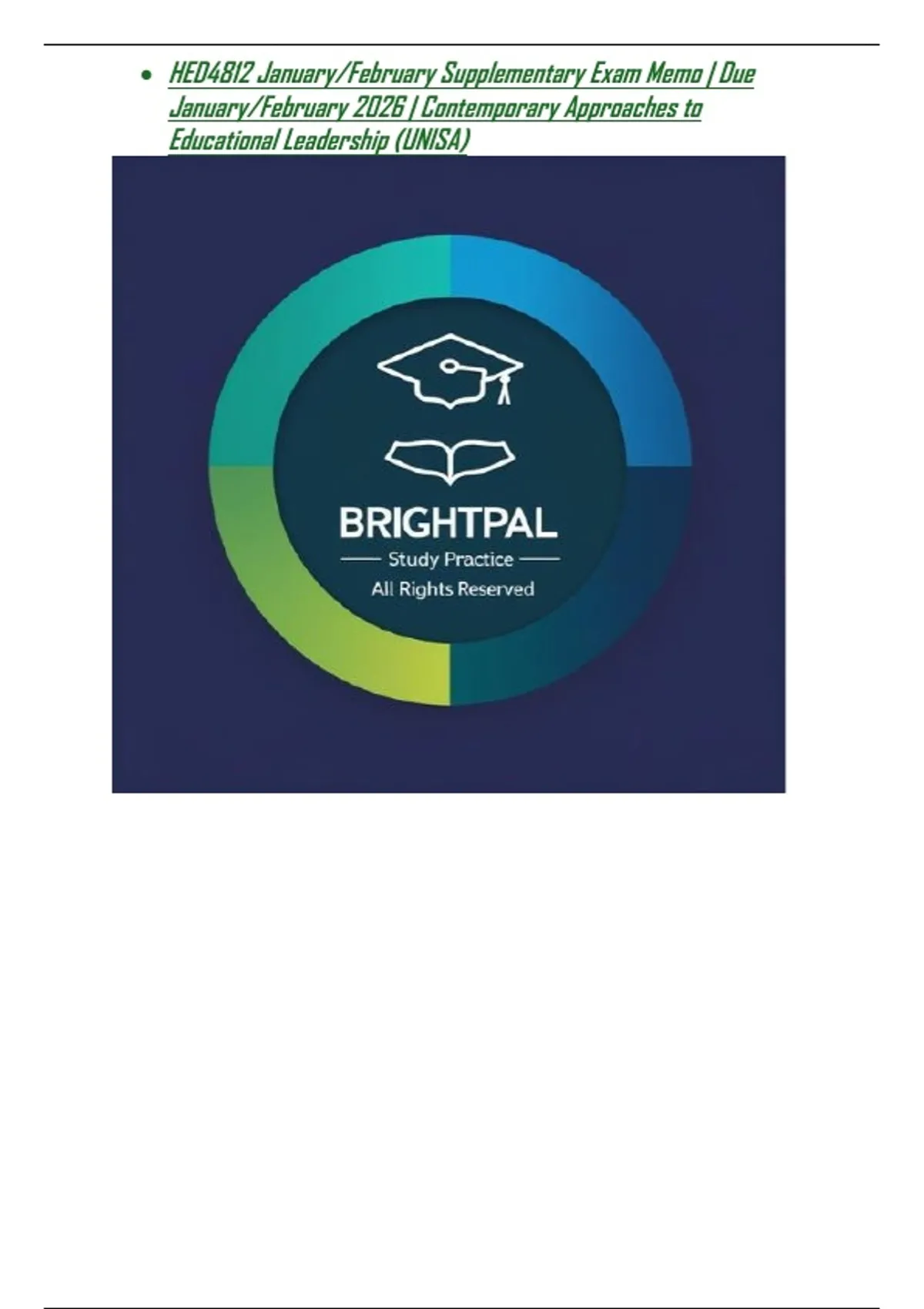 , • HED4812 January/February Supplementary Exam Memo | Due