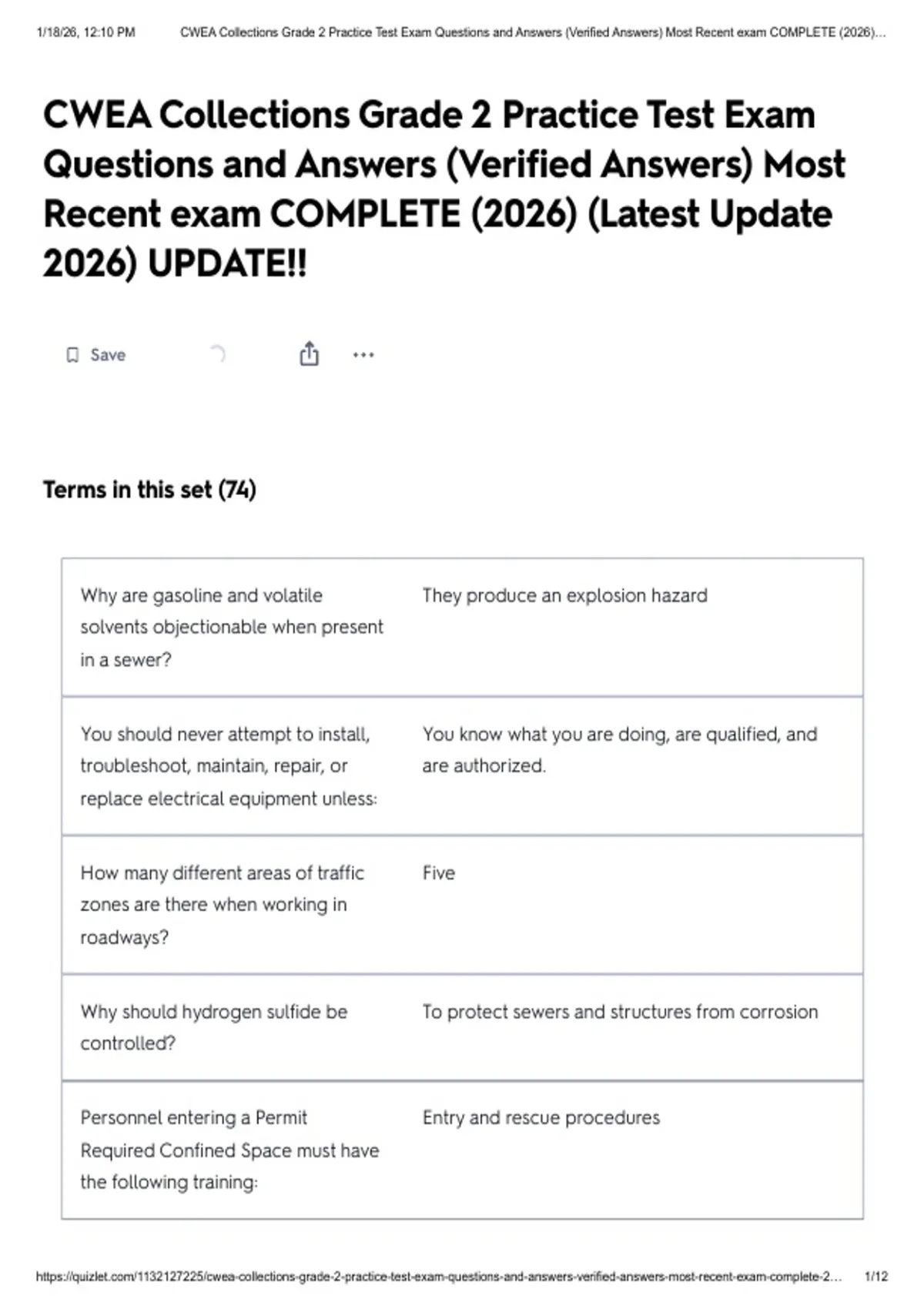 , 1/18/26, 12:10 PM CWEA Collections Grade 2 Practice Test Exam Questions and Answers (Verified Answers) Most Recent exam COMPLETE (2026)…
