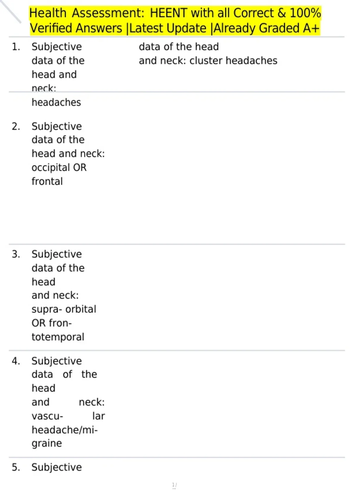 Health Assessment: HEENT with all Correct & 100% Verified Answers |Latest Update |Already Graded A+