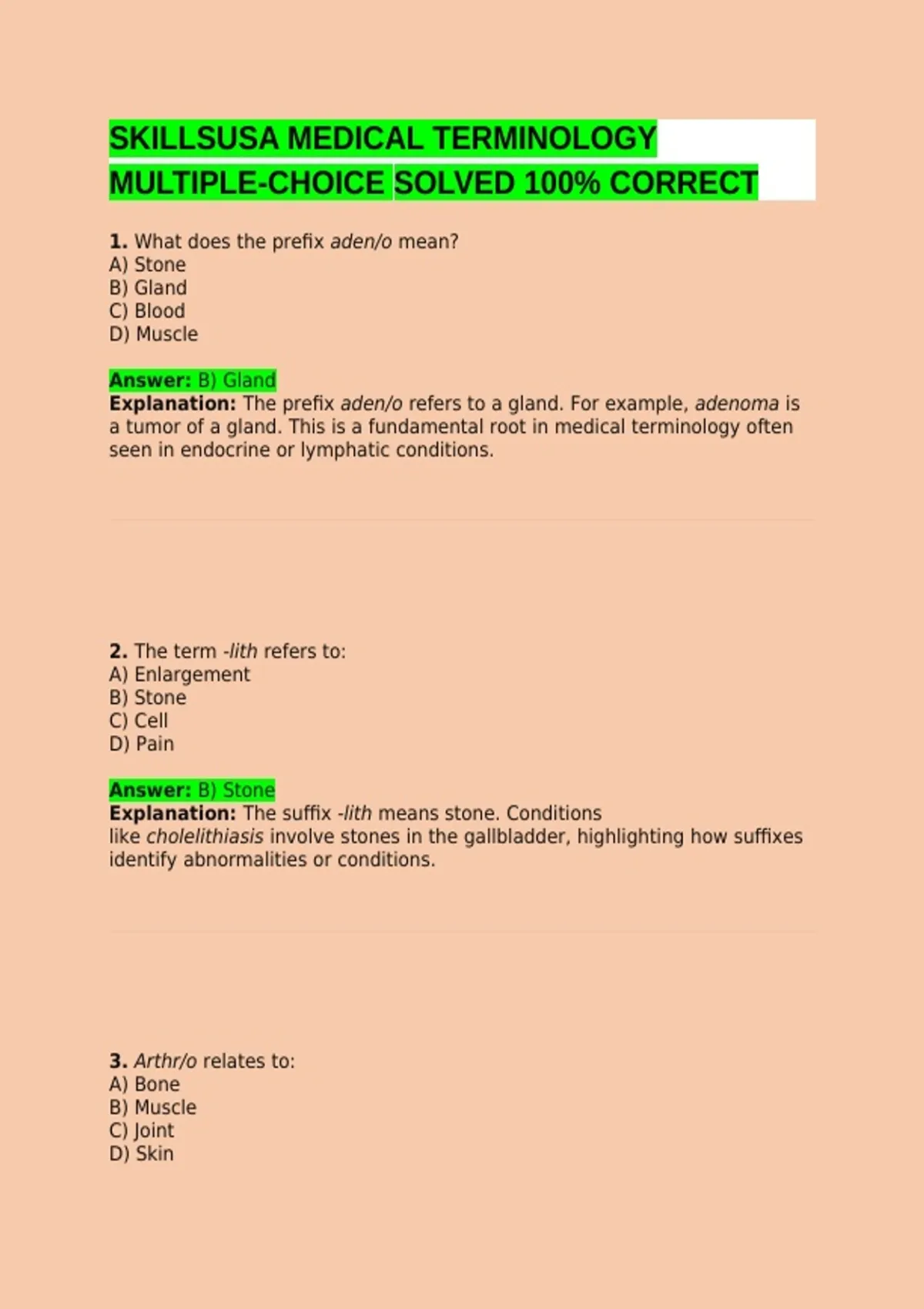 Explanation: The prefix aden/o refers to a gland. For example, adenoma is