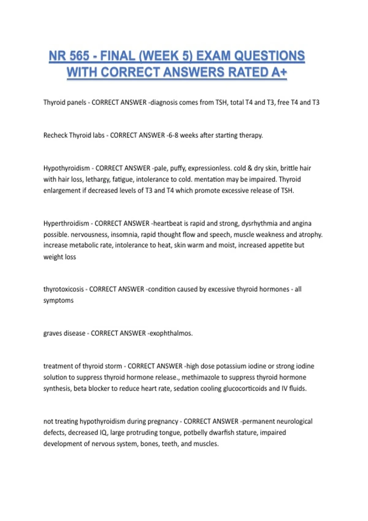 thyrotoxicosis - CORRECT ANSWER -condition caused by excessive thyroid hormones - all