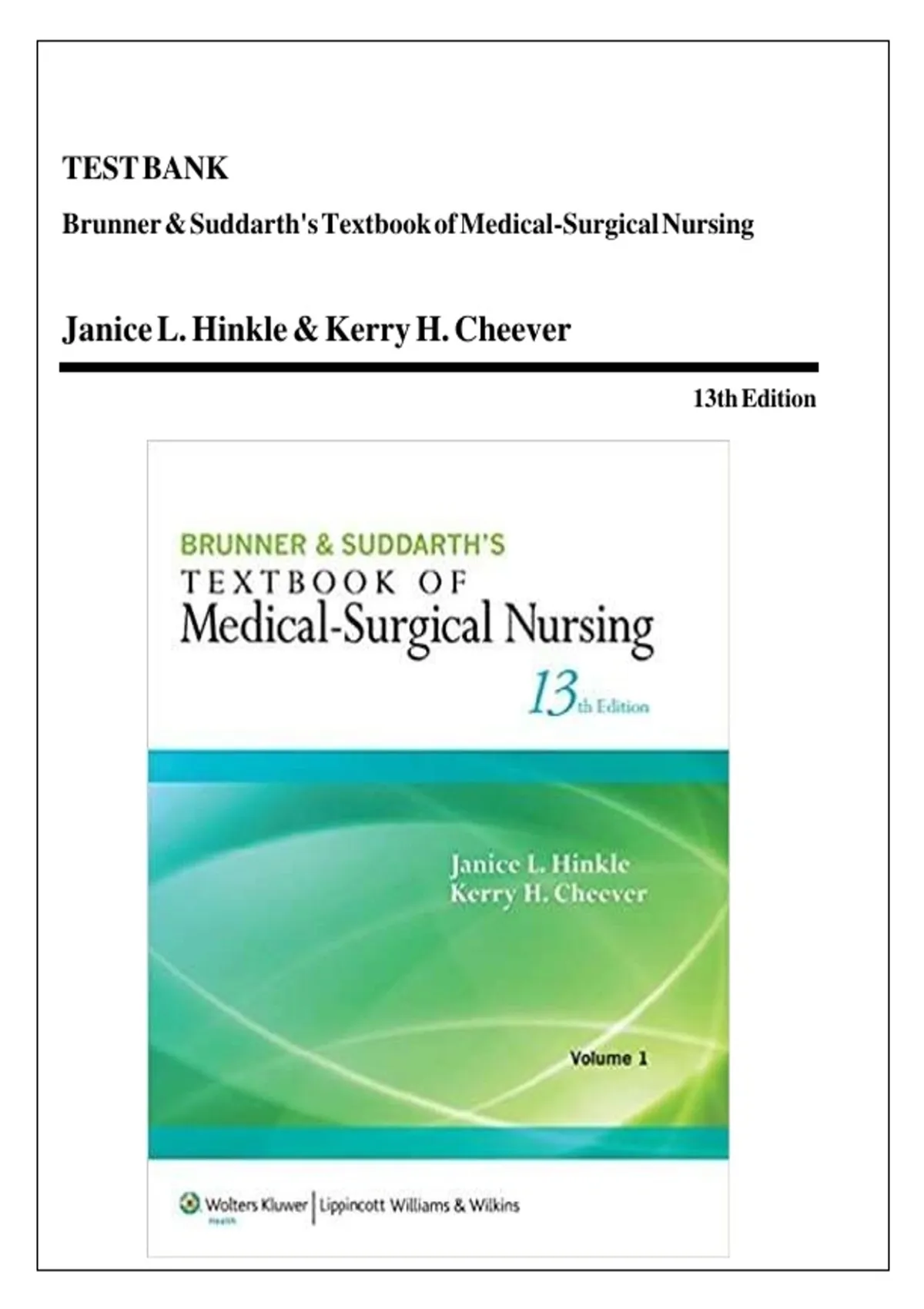 TEST BANK Brunner & Suddarth's Textbook of Medical-Surgical Nursing Janice L. Hinkle & Kerry H. Cheever 13th edition