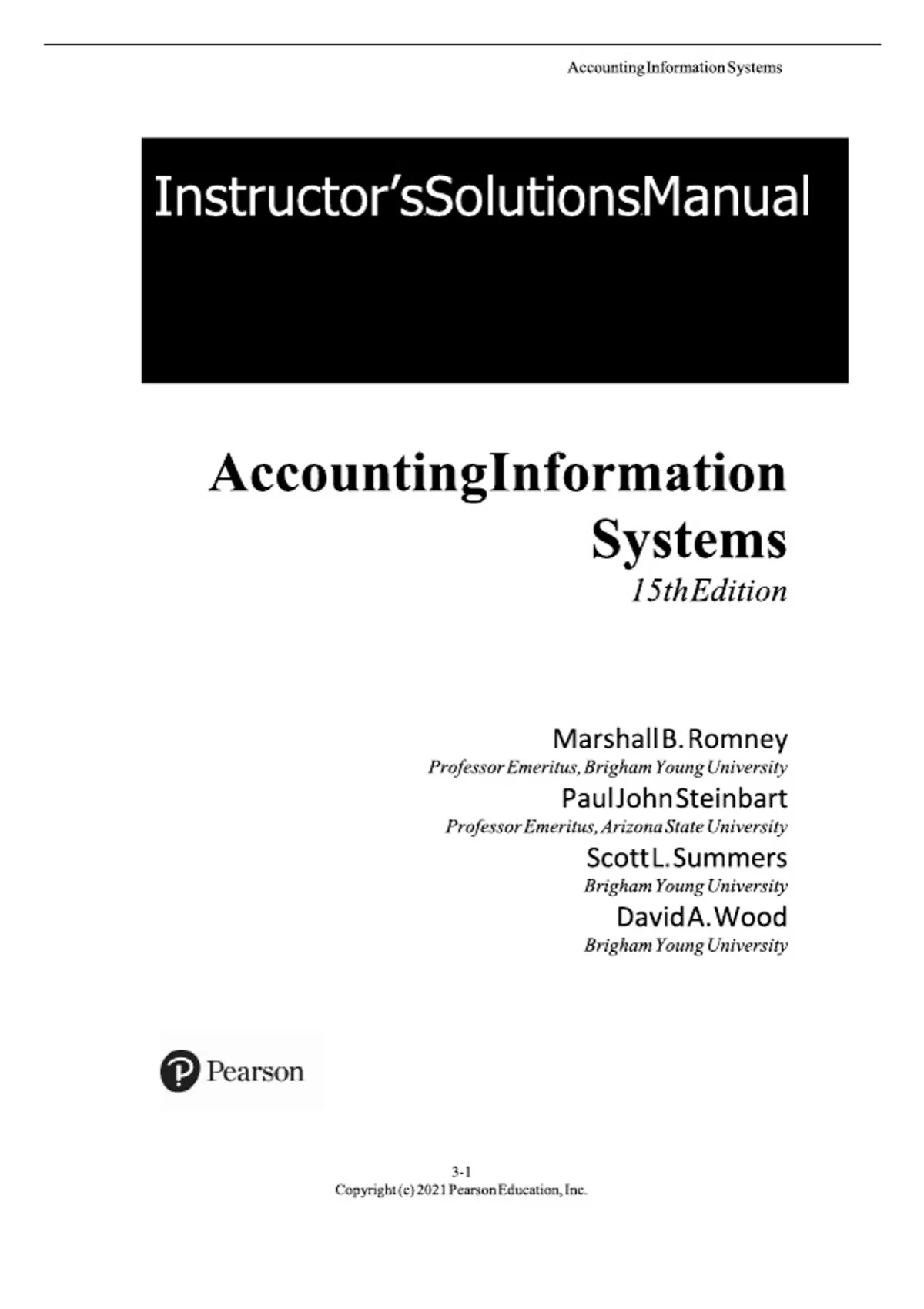 Accounting Information Systems 15th Edition Solution Manual & Test Bank | LL B. Romney, Paul J. Steinbart | Verified Answers PDF