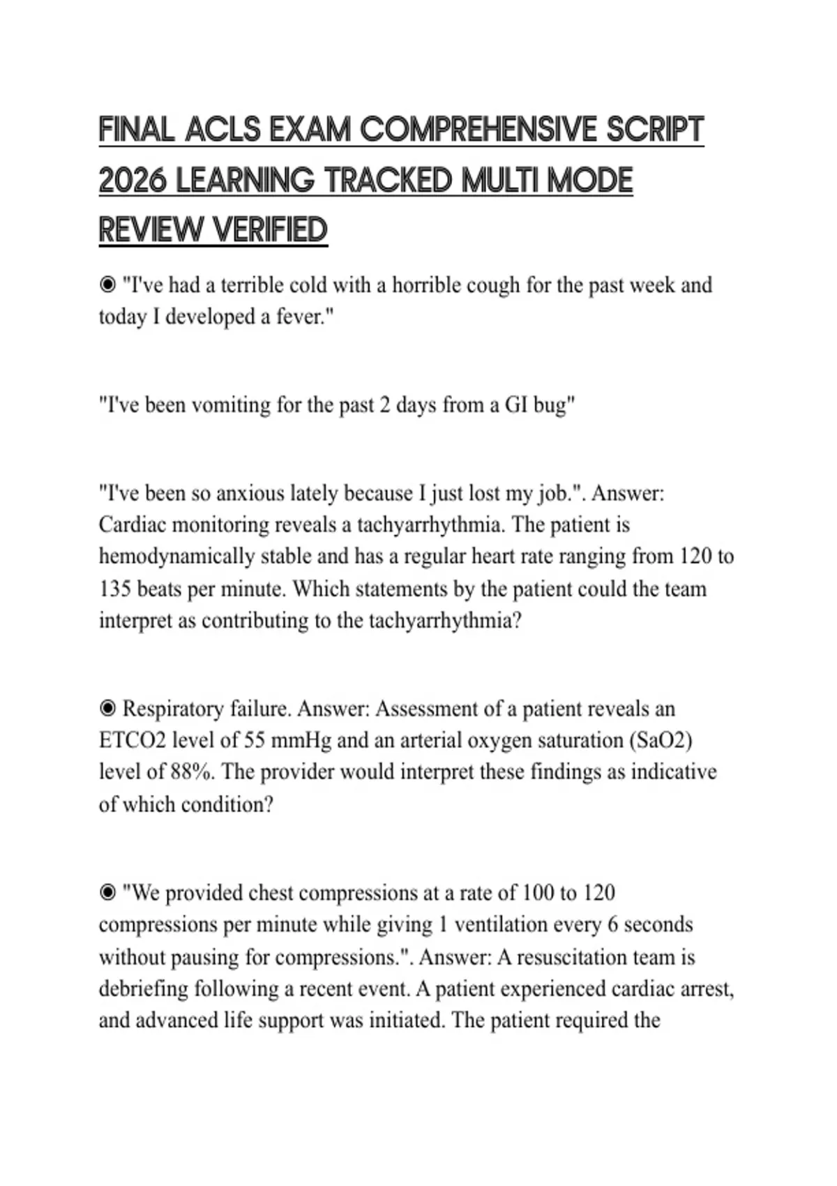 FINAL ACLS EXAM COMPREHENSIVE SCRIPT 2026 LEARNING TRACKED MULTI MODE REVIEW VERIFIED