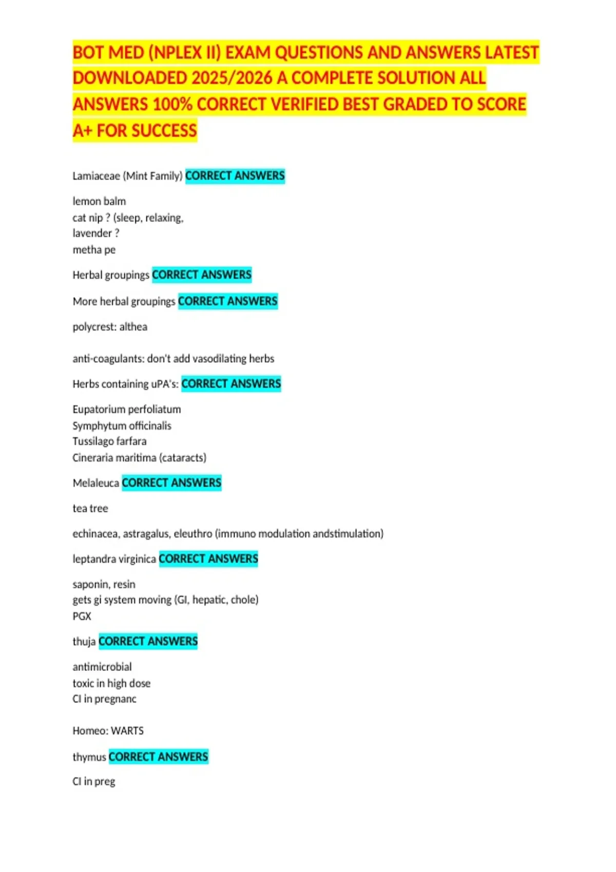 More herbal groupings CORRECT ANSWERS