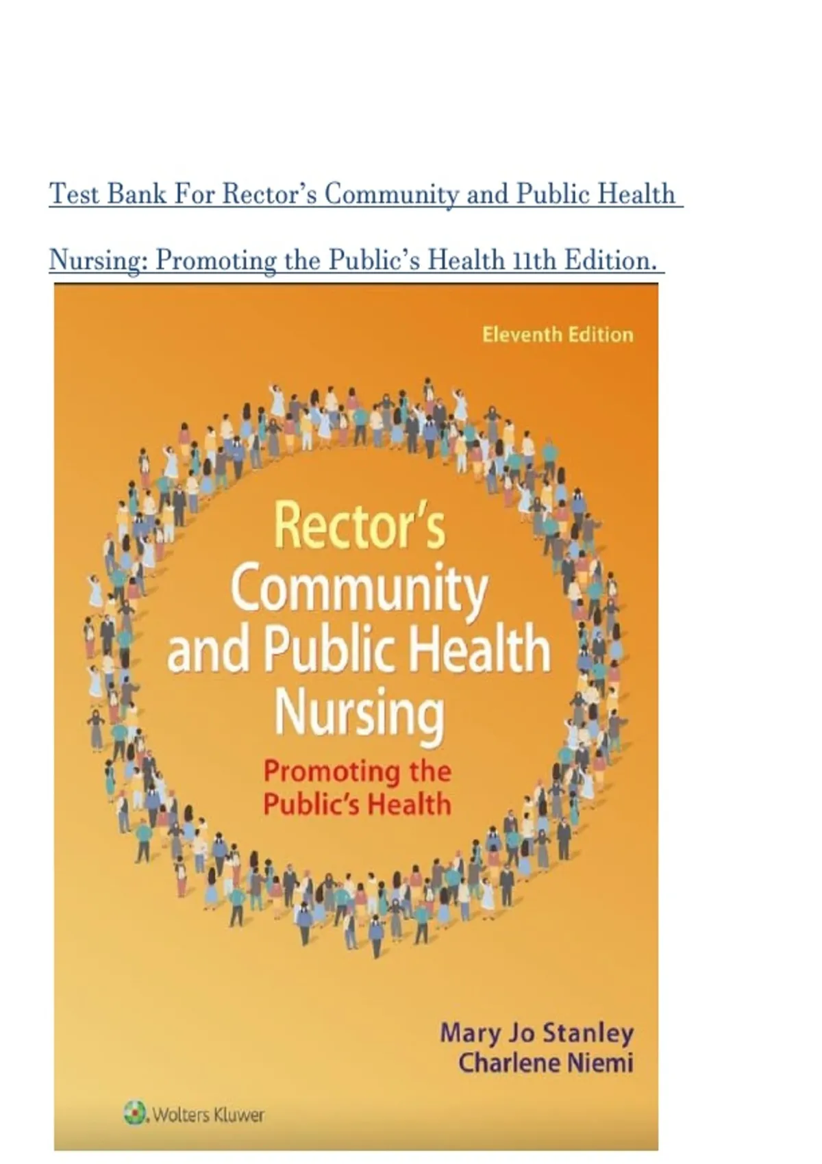 Test Bank For Rector's Community and Public Health Nursing: Promoting the Public's Health 11th Edition. All Chapters 2026