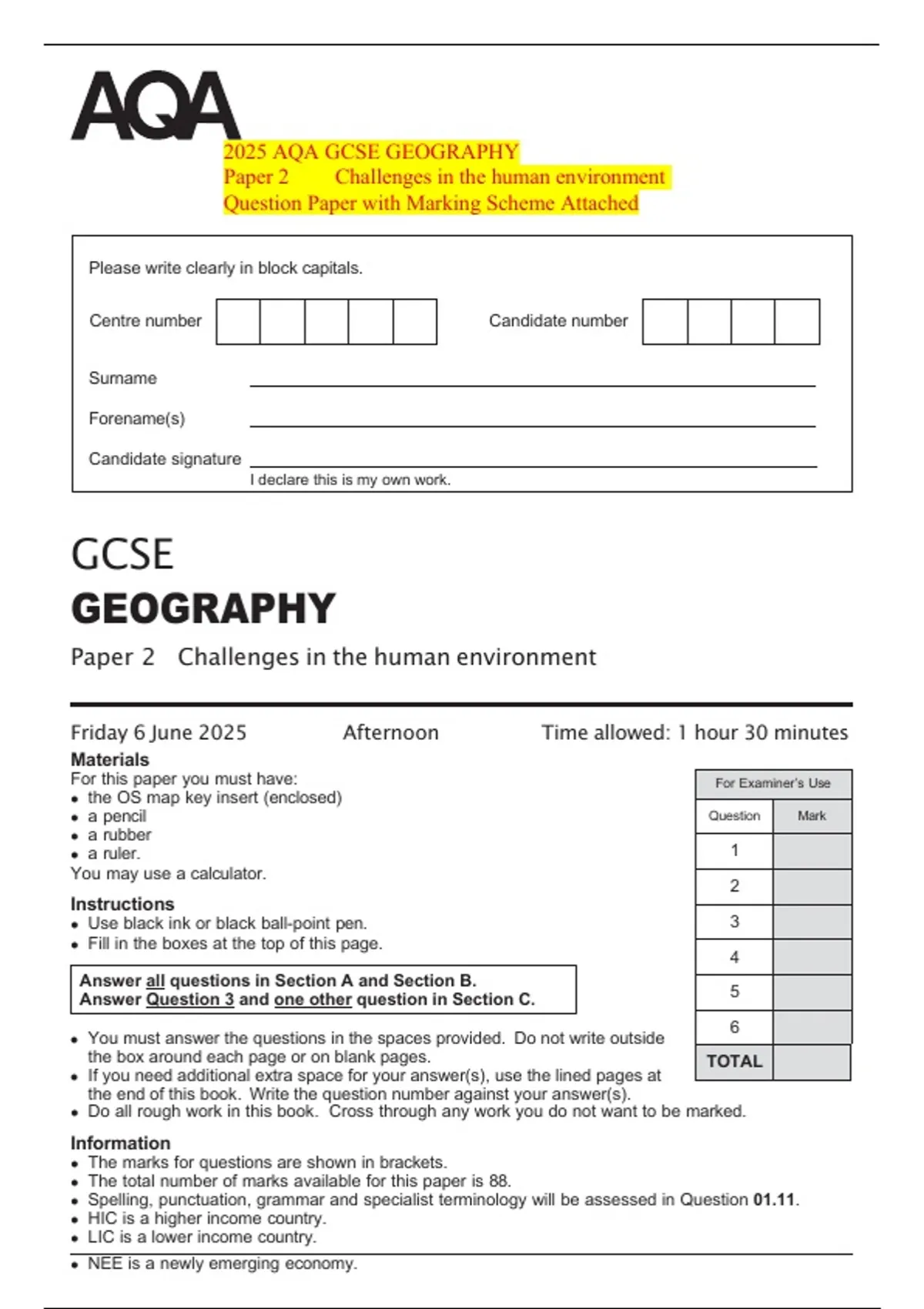 Friday 6 June 2025 Afternoon Time allowed: 1 hour 30 minutes