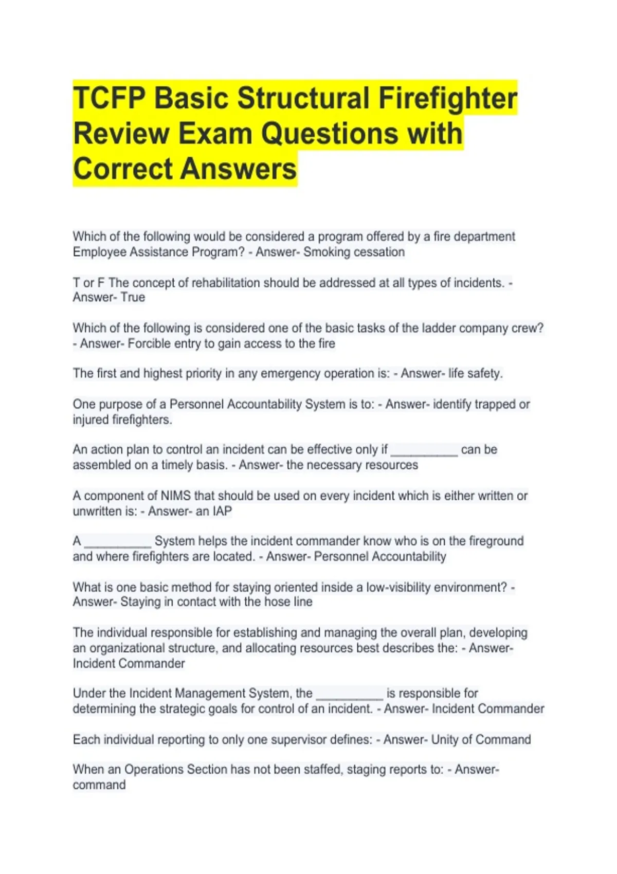 The first and highest priority in any emergency operation is: - Answer- life safety.