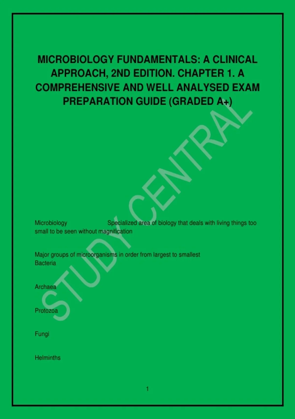 Microbiology Fundamentals: A Clinical Approach, 2nd Edition, Chapter 1, Comprehensive Exam Preparation Guide (Graded A+)