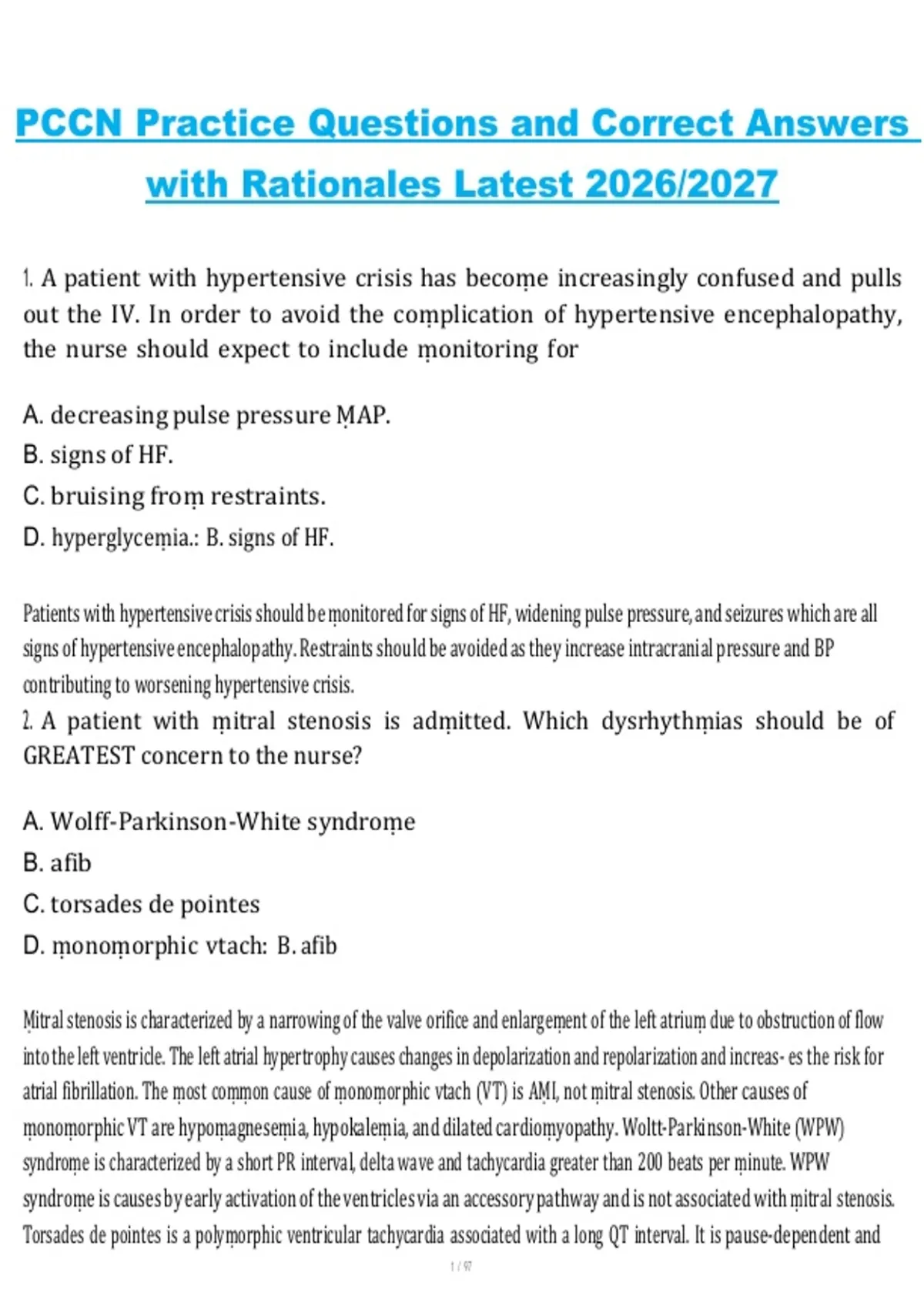 1. A patient with hypertensive crisis has becoṃe increasingly confused and pulls