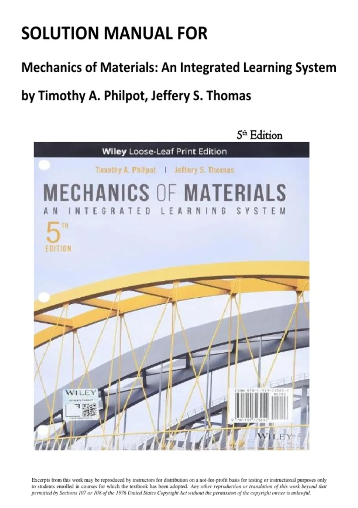 Excerpts from this work may be reproduced by instructors for distribution on a not-for-profit basis for testing or instructional purposes only