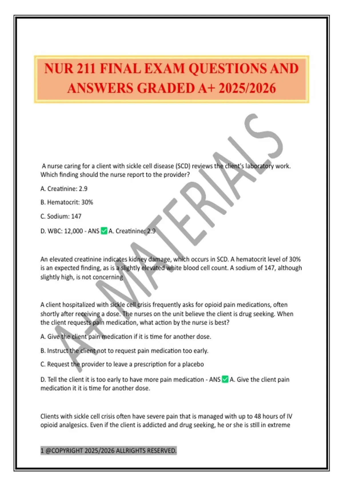 NUR 211 FINAL EXAM QUESTIONS AND ANSWERS GRADED A+ 2025/2026