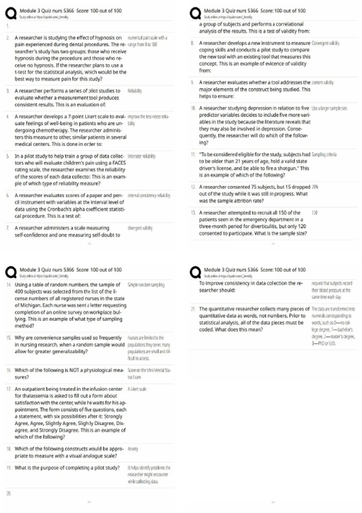 Score 100 out of 100 on the NURS 5366 Module 3 Quiz with exam-accurate questions and verified correct answers covering nursing research design, sampling methods, measurement, reliability, validity, and bias. Fully updated for 2025 to support quizzes, assignments, and exams