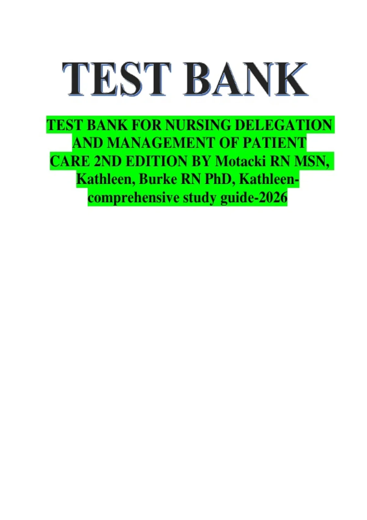 , Nursing Delegation and Management of Patient Care 2nd Edition Motacki Test Bank