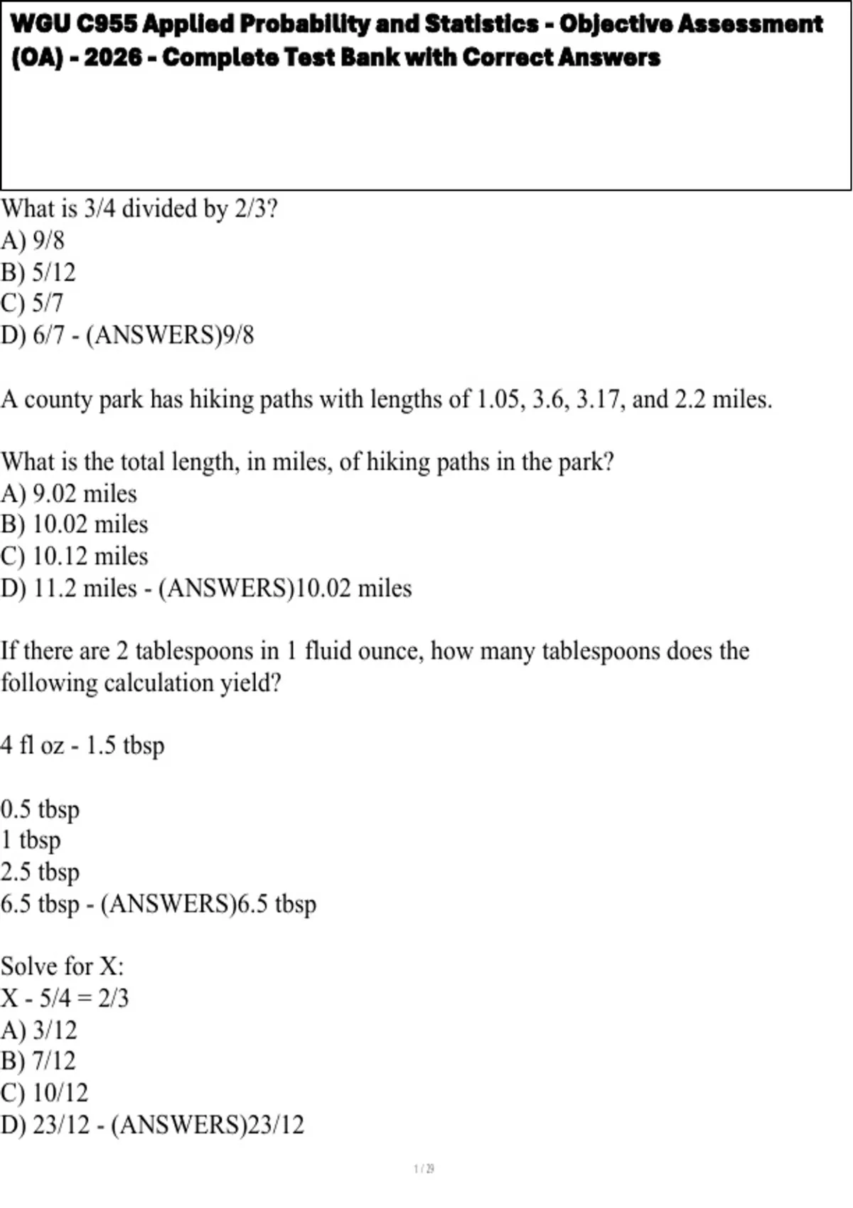WGU C955 Applied Probability and Statistics - Objective Assessment