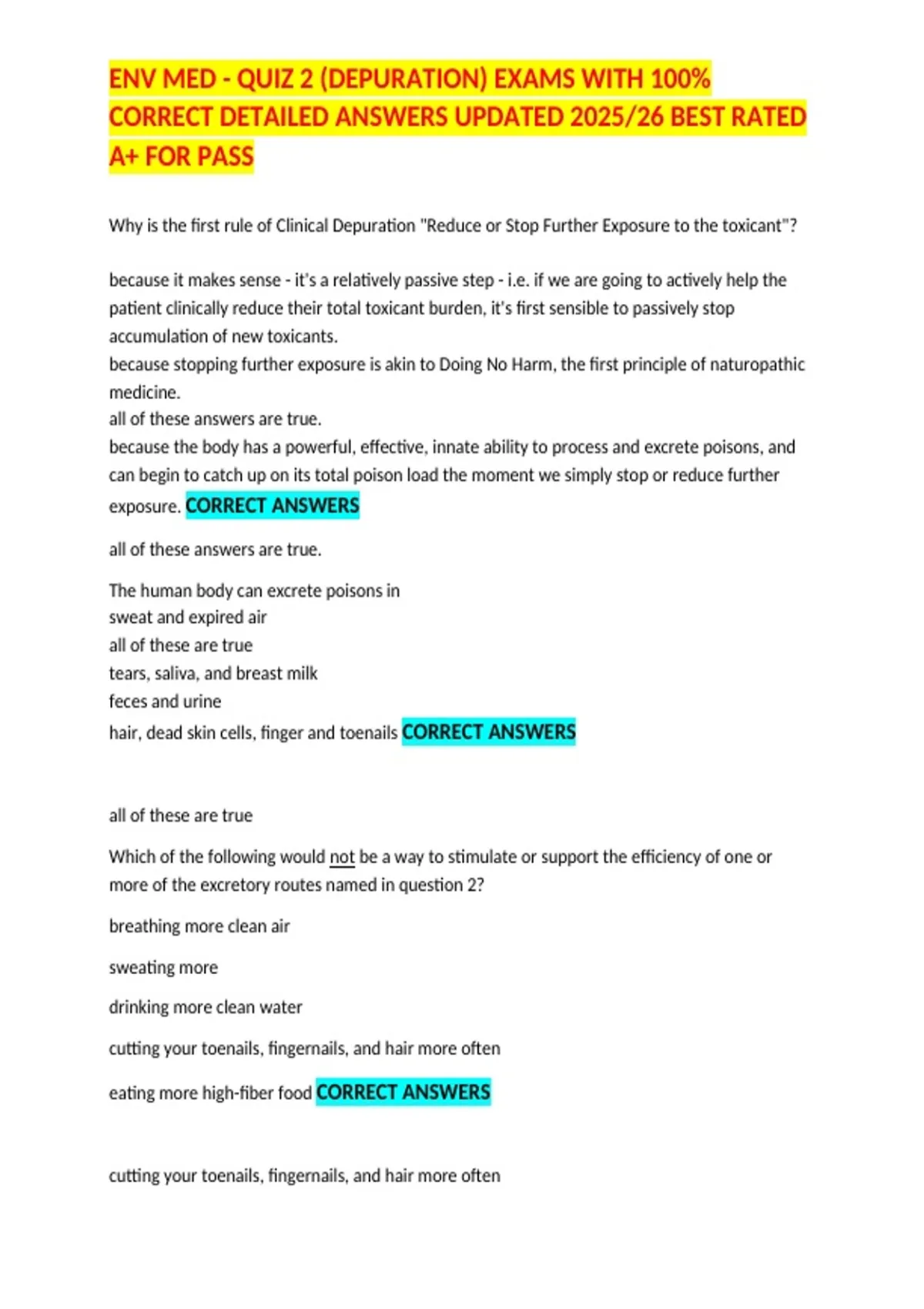 ENV MED - QUIZ 2 (DEPURATION) EXAMS WITH 100%