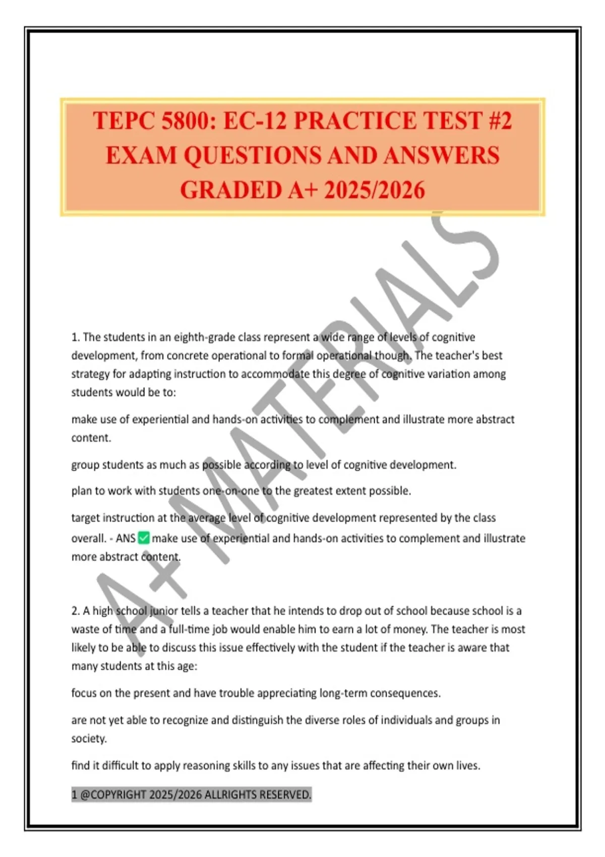 TEPC 5800: EC-12 PRACTICE TEST #2