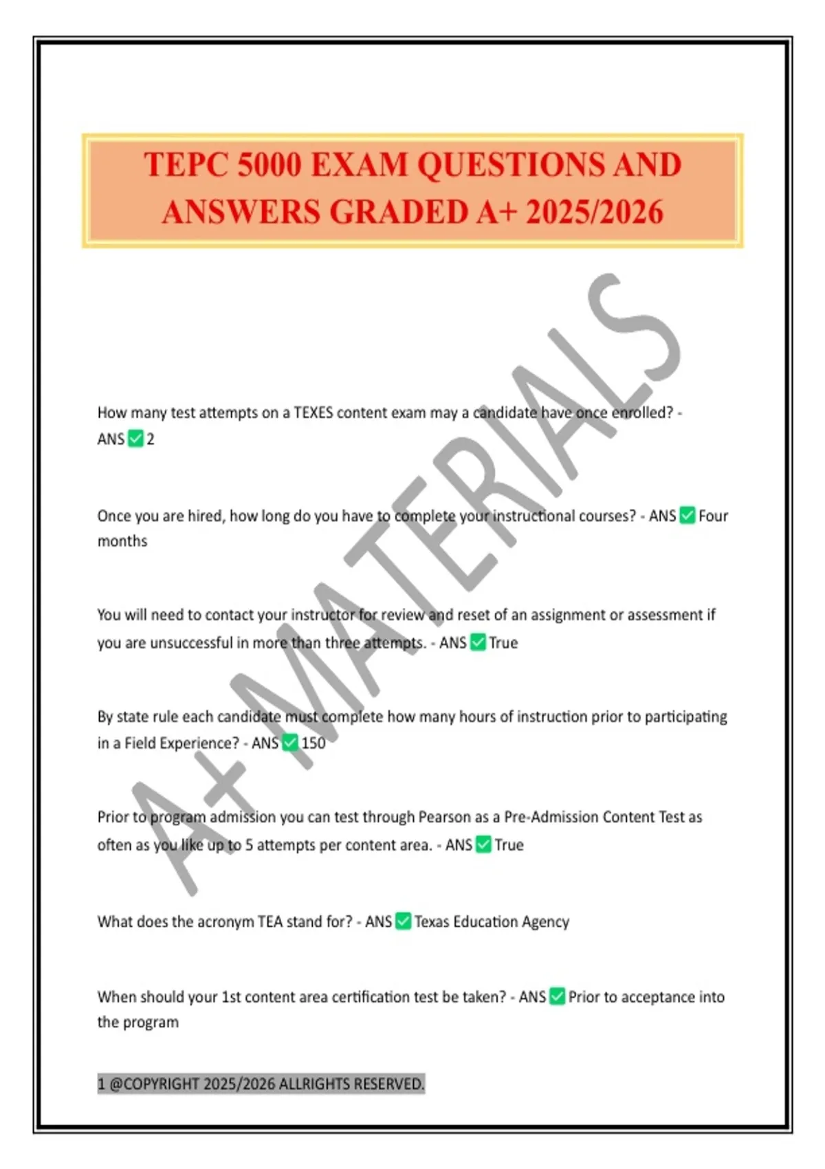 TEPC 5000 EXAM QUESTIONS AND