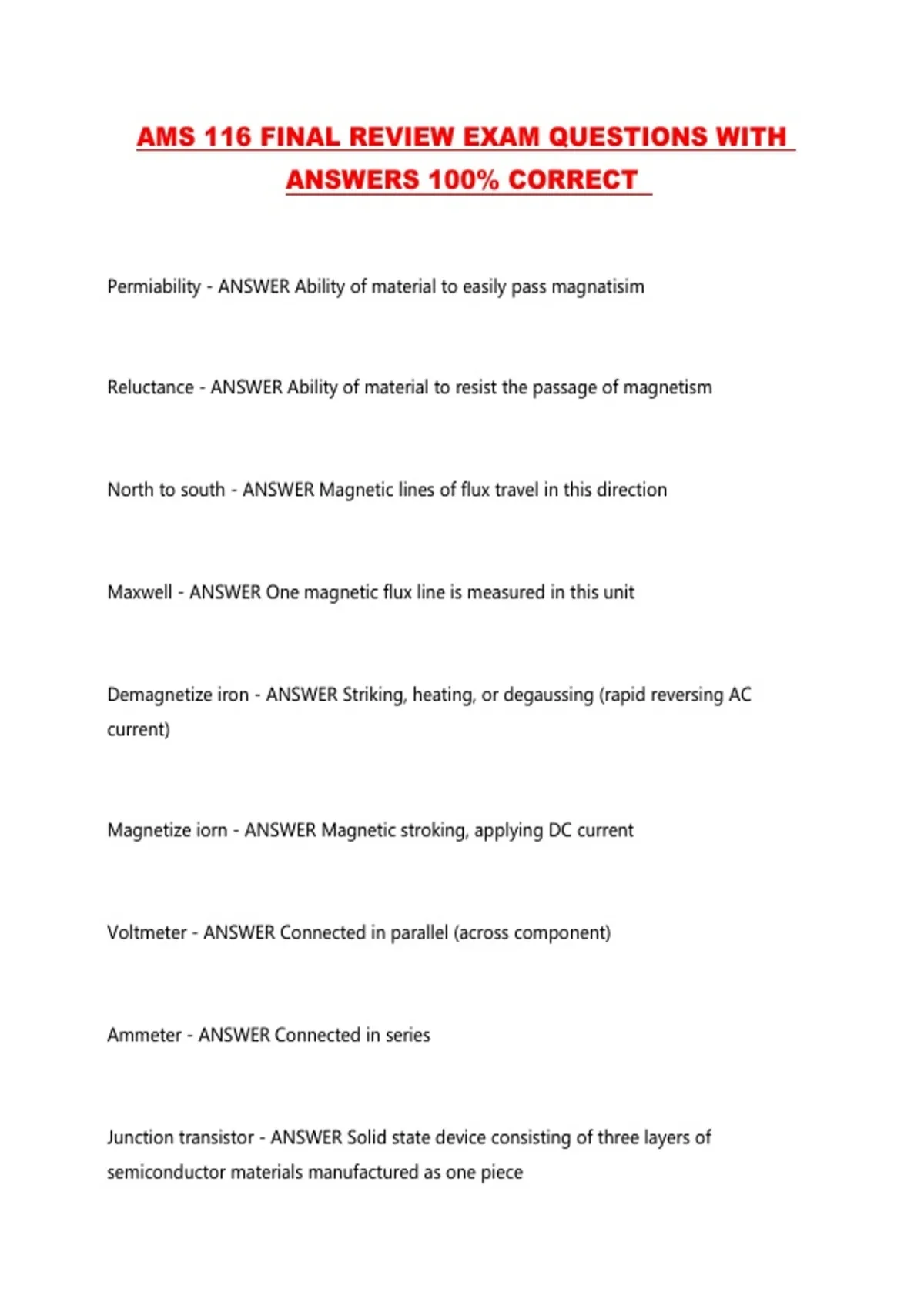 AMS 116 FINAL REVIEW EXAM QUESTIONS WITH
