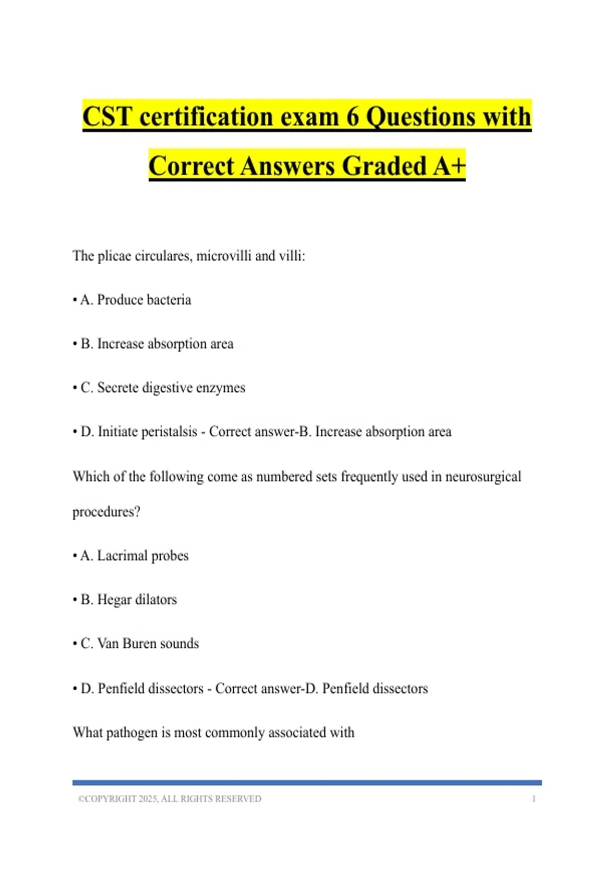 CST certification exam 6 Questions with Correct Answers Graded A+