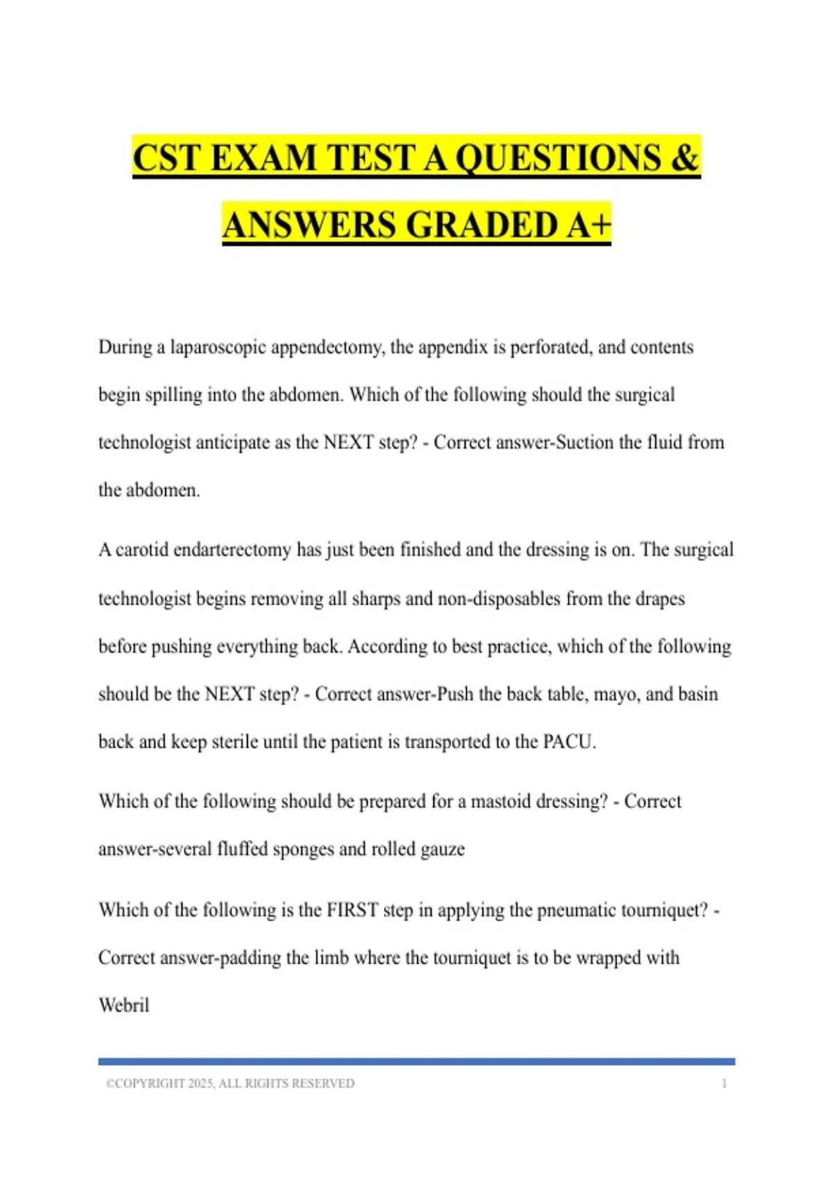 CST EXAM TEST A QUESTIONS & ANSWERS GRADED A+