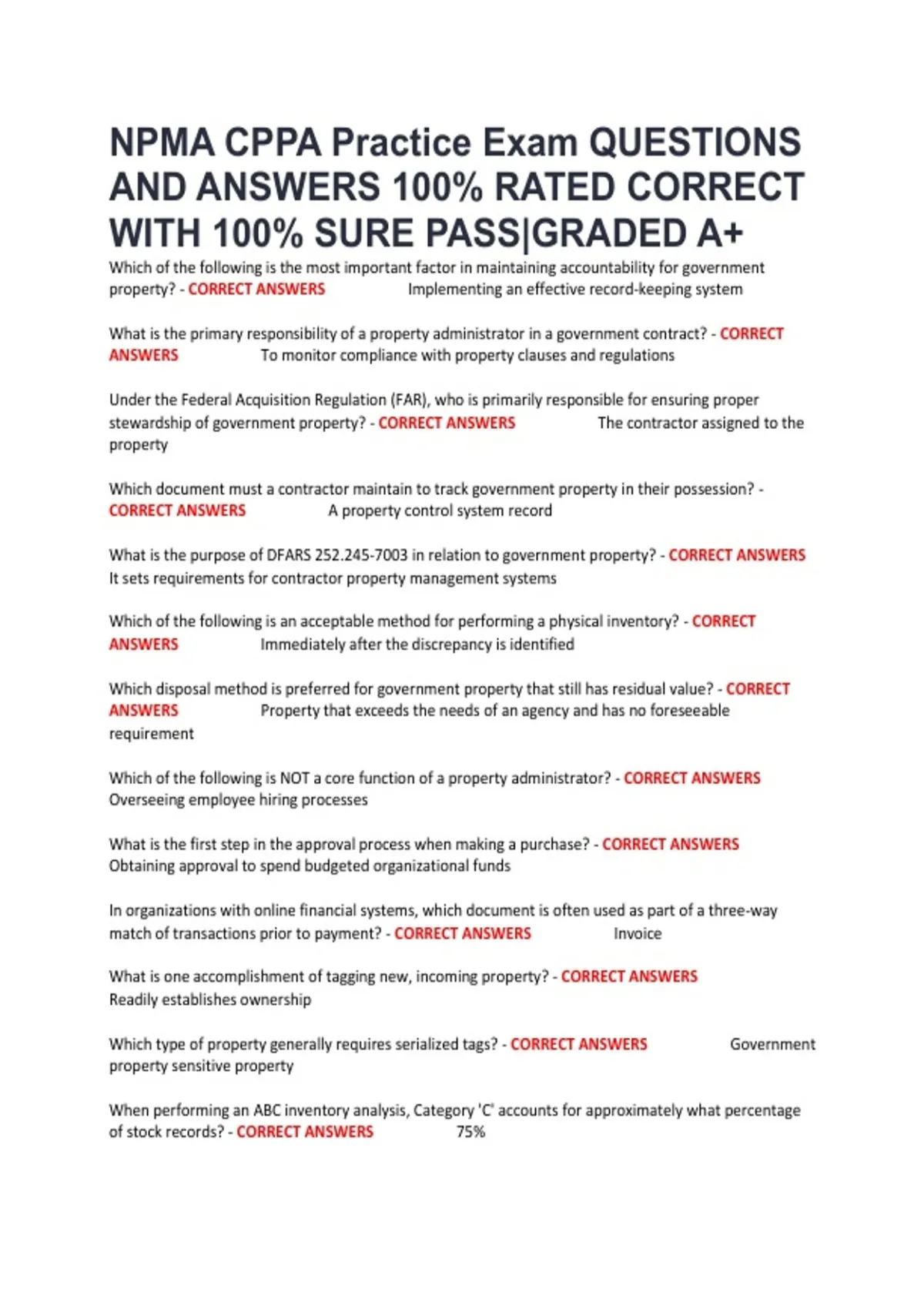 CORRECT ANSWERS A property control system record