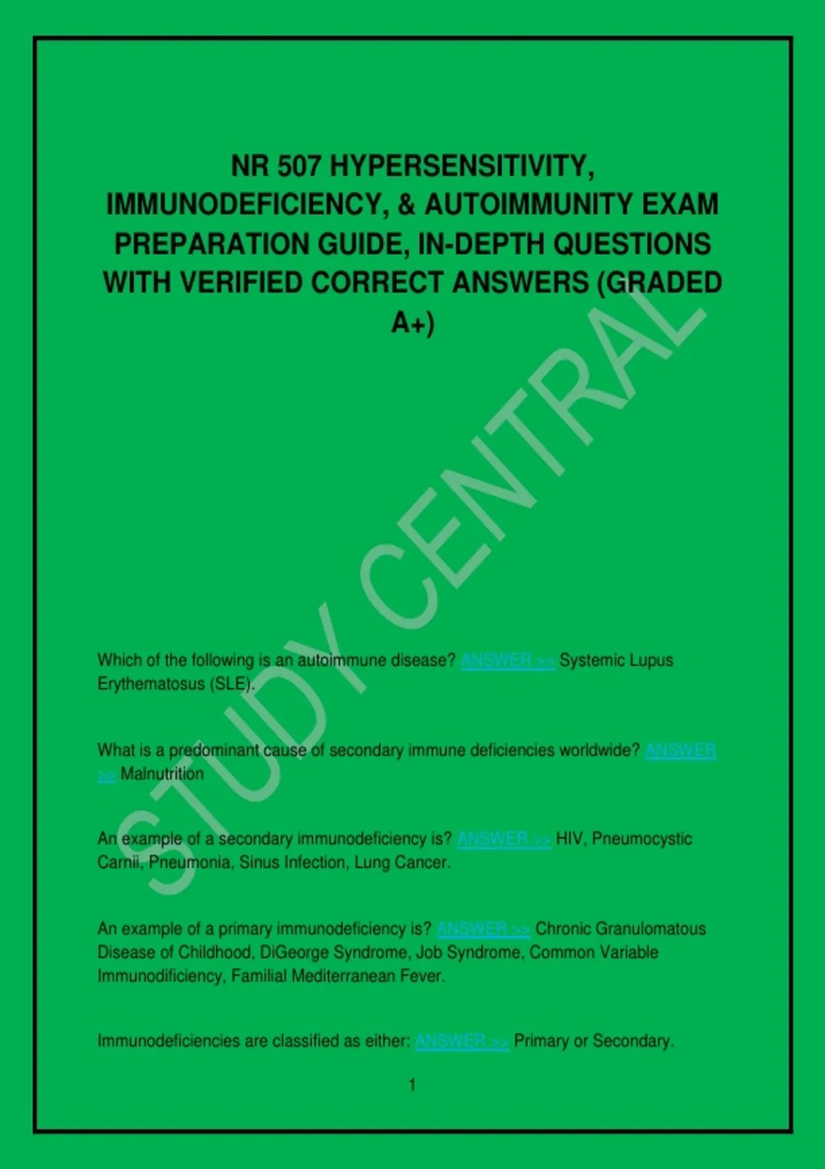 IMMUNODEFICIENCY, & AUTOIMMUNITY EXAM