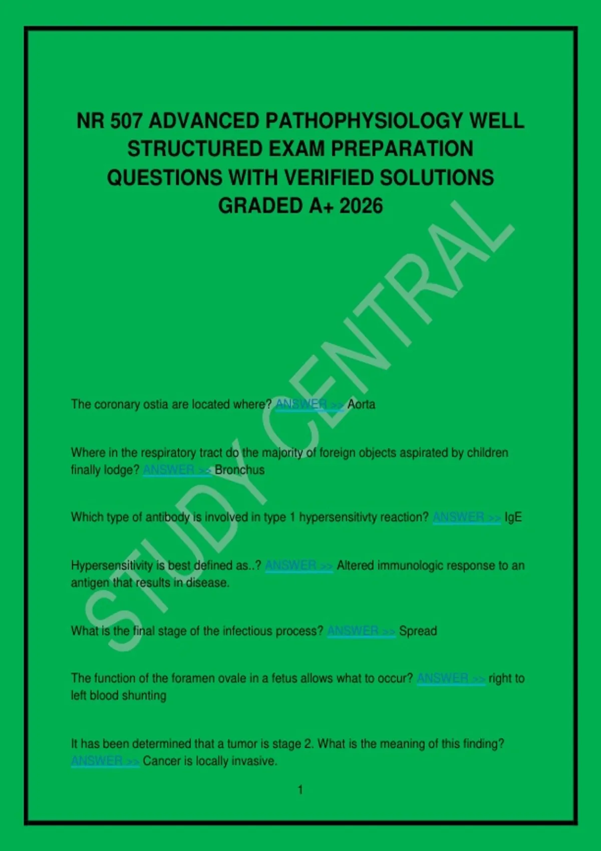 NR507 Advanced Pathophysiology Exam Preparation, [Institution Name], Academic Year 2026 – Well-Structured Questions with Verified Solutions (Graded A+)