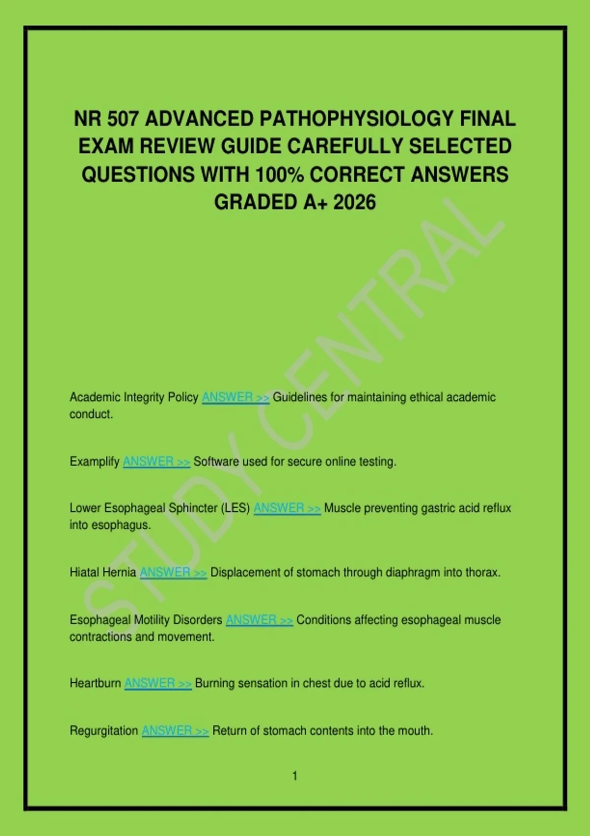EXAM REVIEW GUIDE CAREFULLY SELECTED