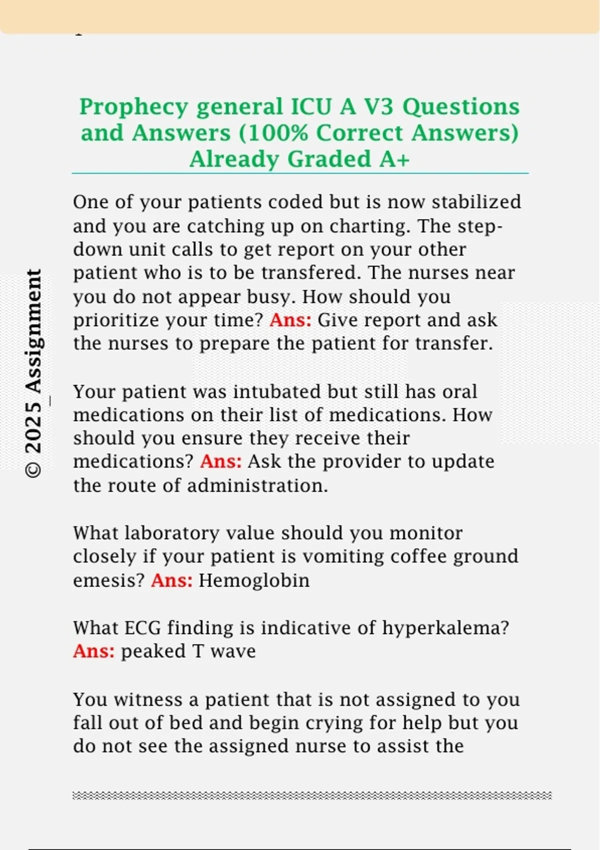 Prophecy general ICU A V3 Questions