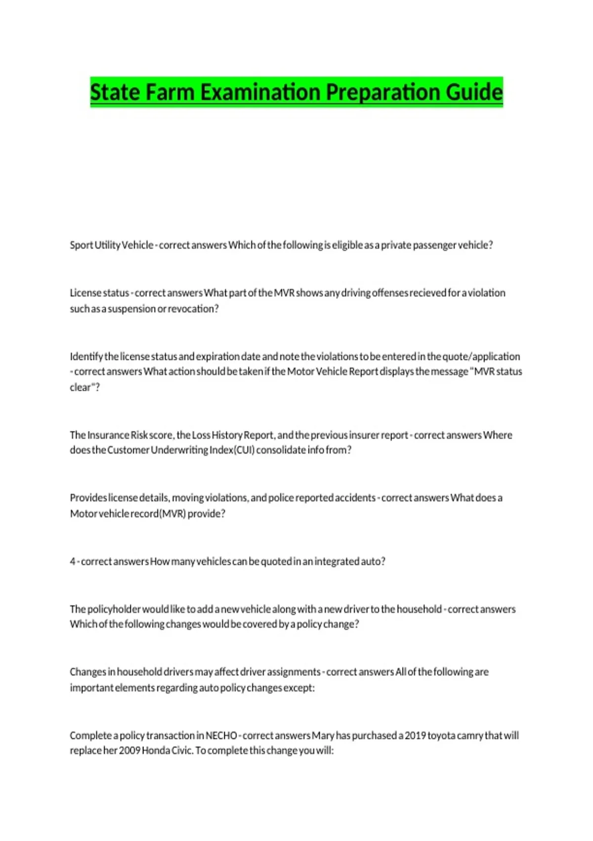 State Farm Examination Preparation Guide