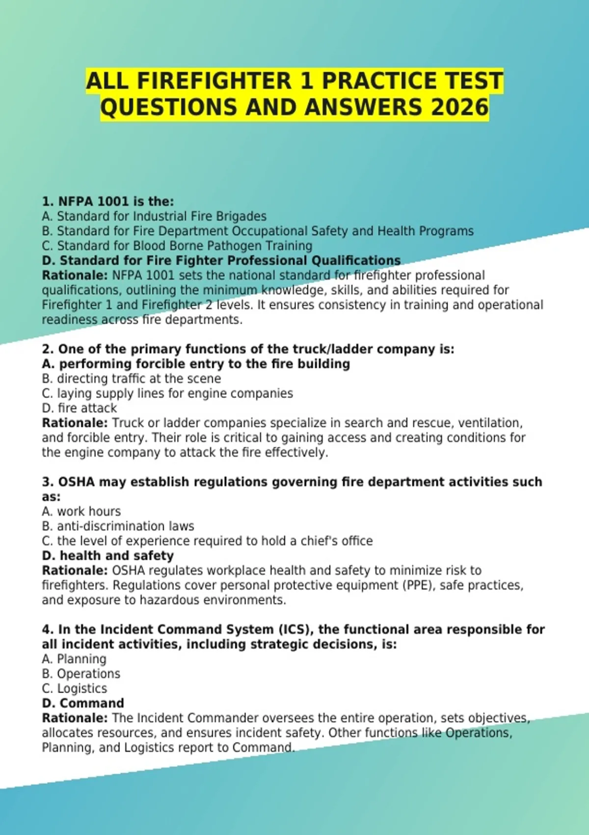 Firefighter 1 and Firefighter 2 levels. It ensures consistency in training and operational