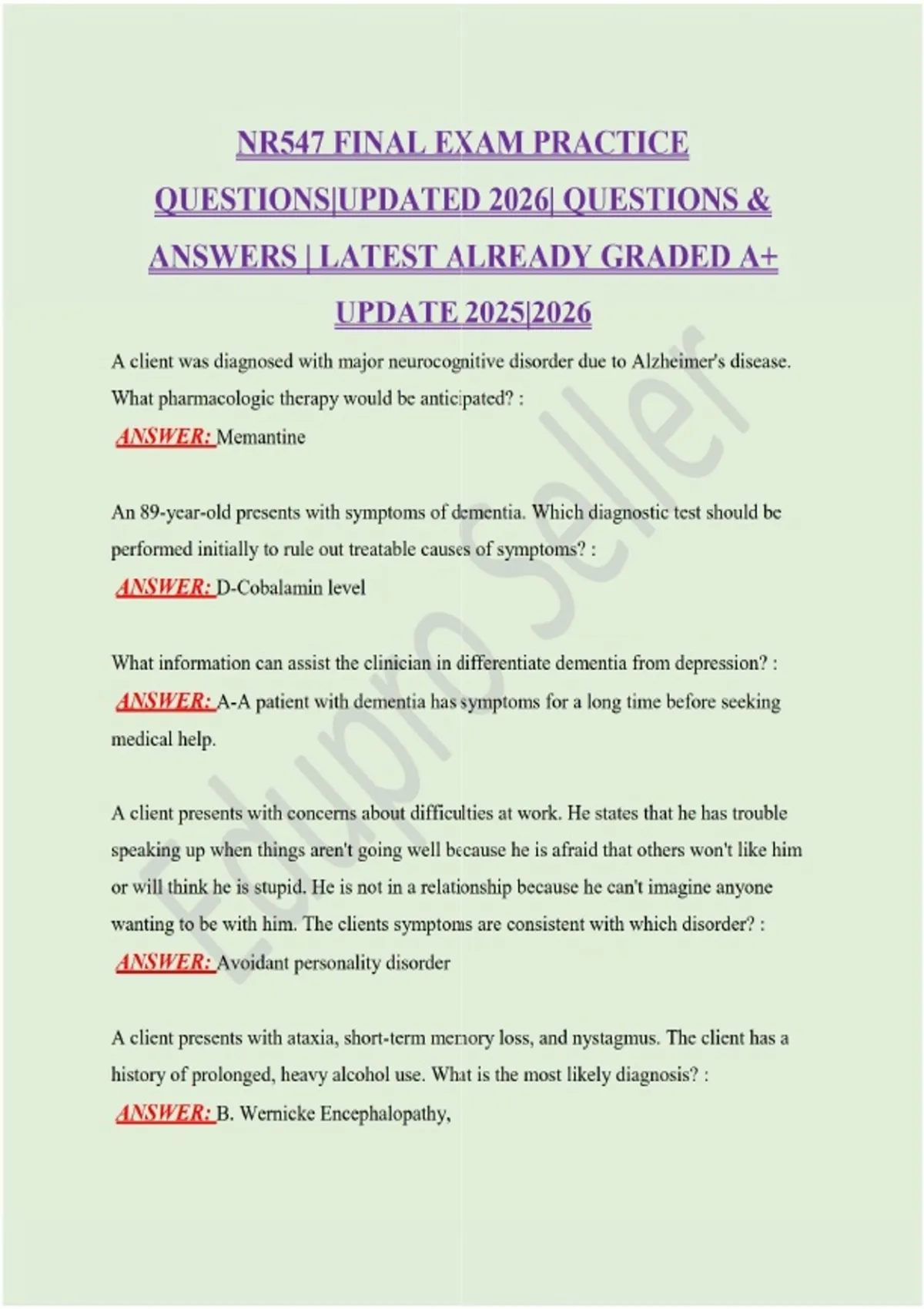 NR547 FINAL EXAM PRACTICE QUESTIONS|UPDATED 2026| QUESTIONS & ANSWERS | LATEST ALREADY GRADED A+ UPDATE 2025|2026