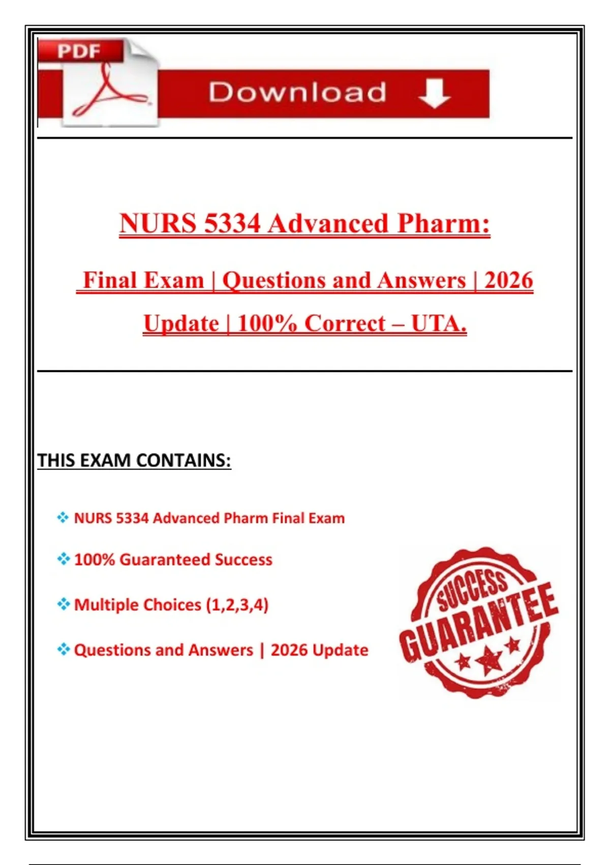 NURS 5334 Advanced Pharm Final Exam